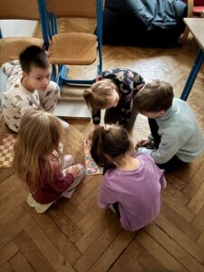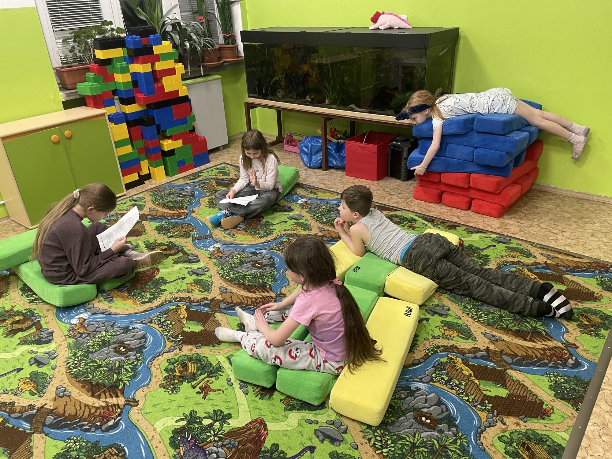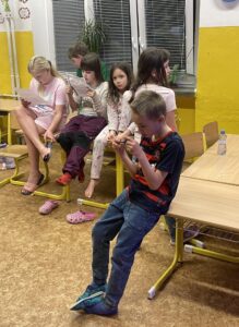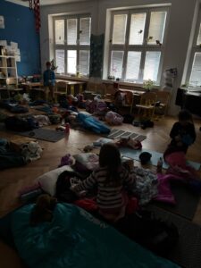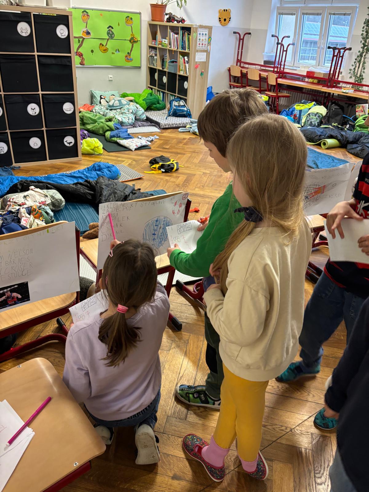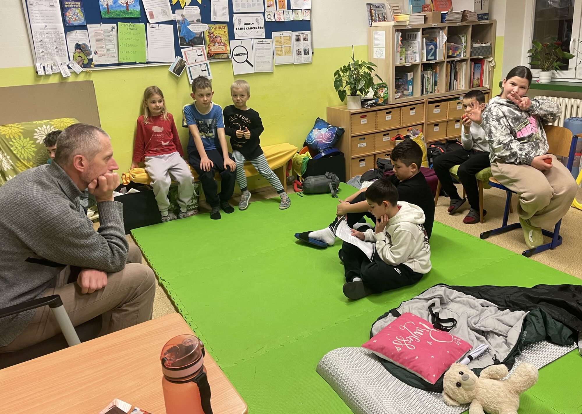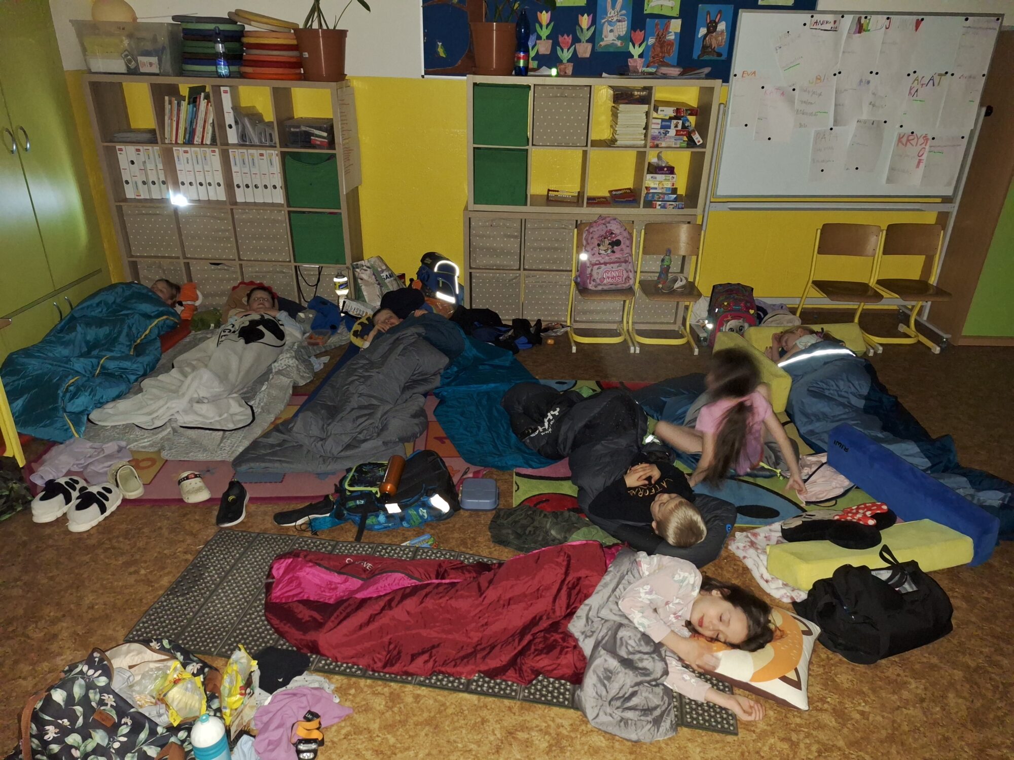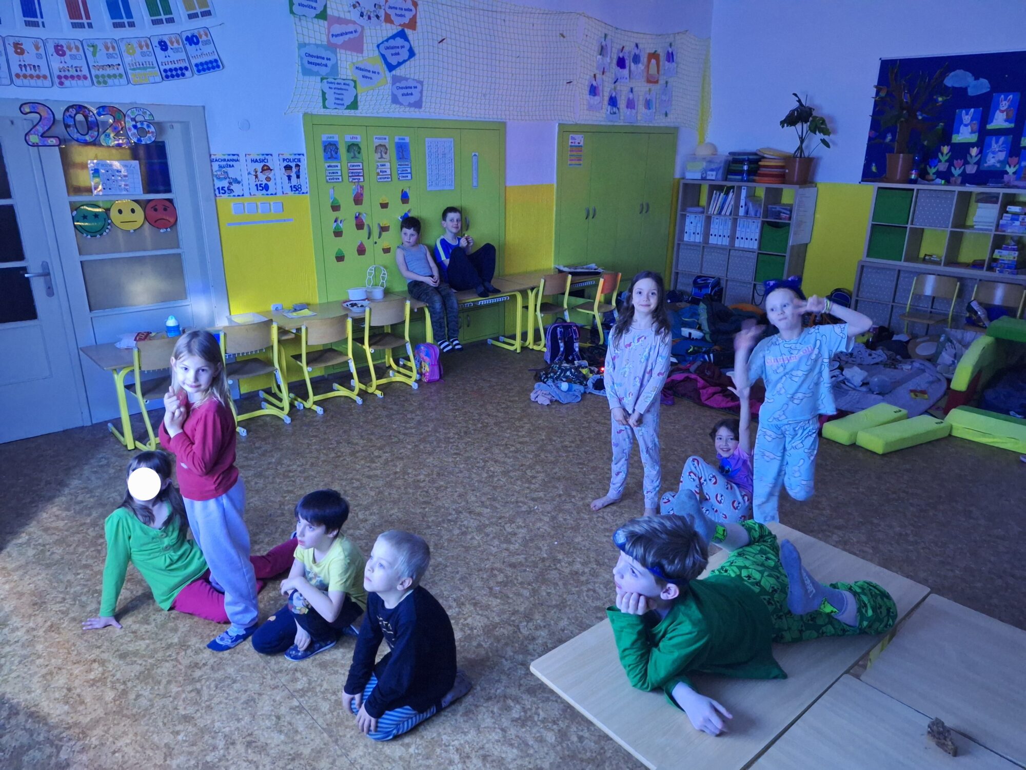 Naše škola se proměnila v kouzelné místo plné příběhů, her a dobrodružství. Děti si nejprve připravily svá spací místa přímo ve třídách a poté jsme společně zahájili celý večer.