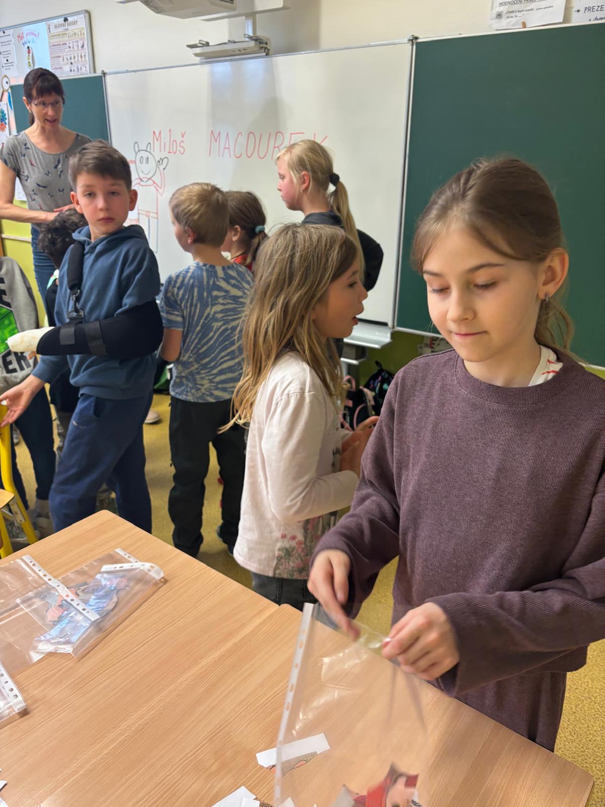 Následně se děti ve skupinkách pustily do plnění úkolů na stanovištích, která byla inspirována tvorbou Miloše Macourka, světem Walt Disney a také výročím Olympijských her. Velkou radost máme z toho, že stanoviště nepřipravili jen učitelé, ale podílely se na nich i samotné děti!