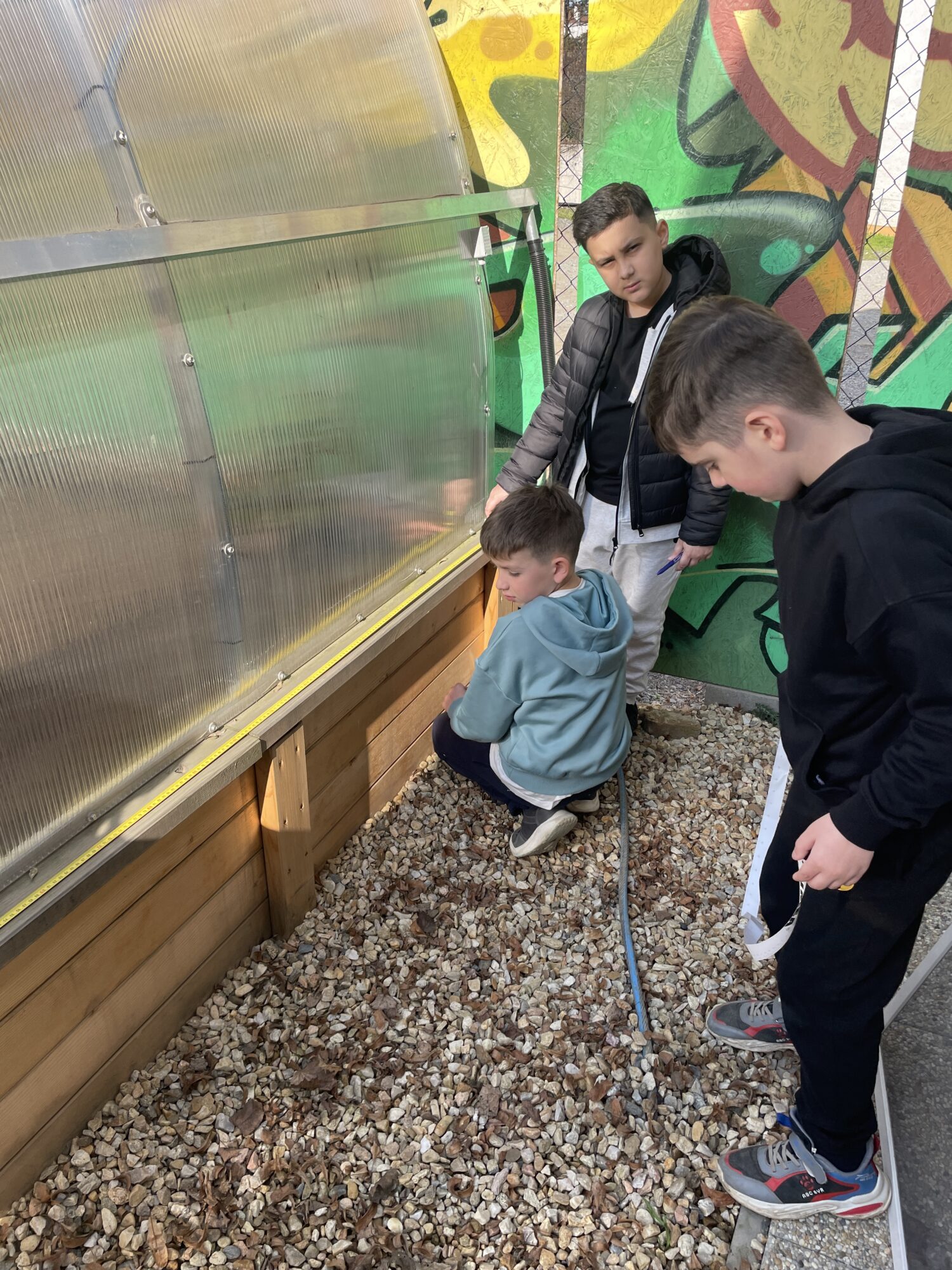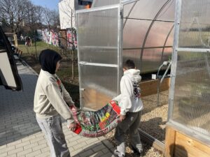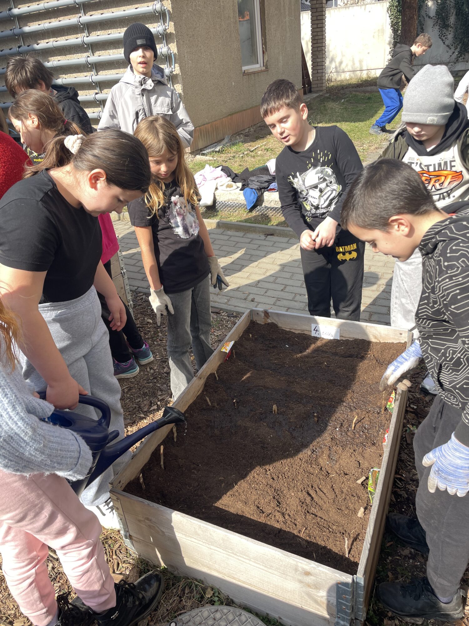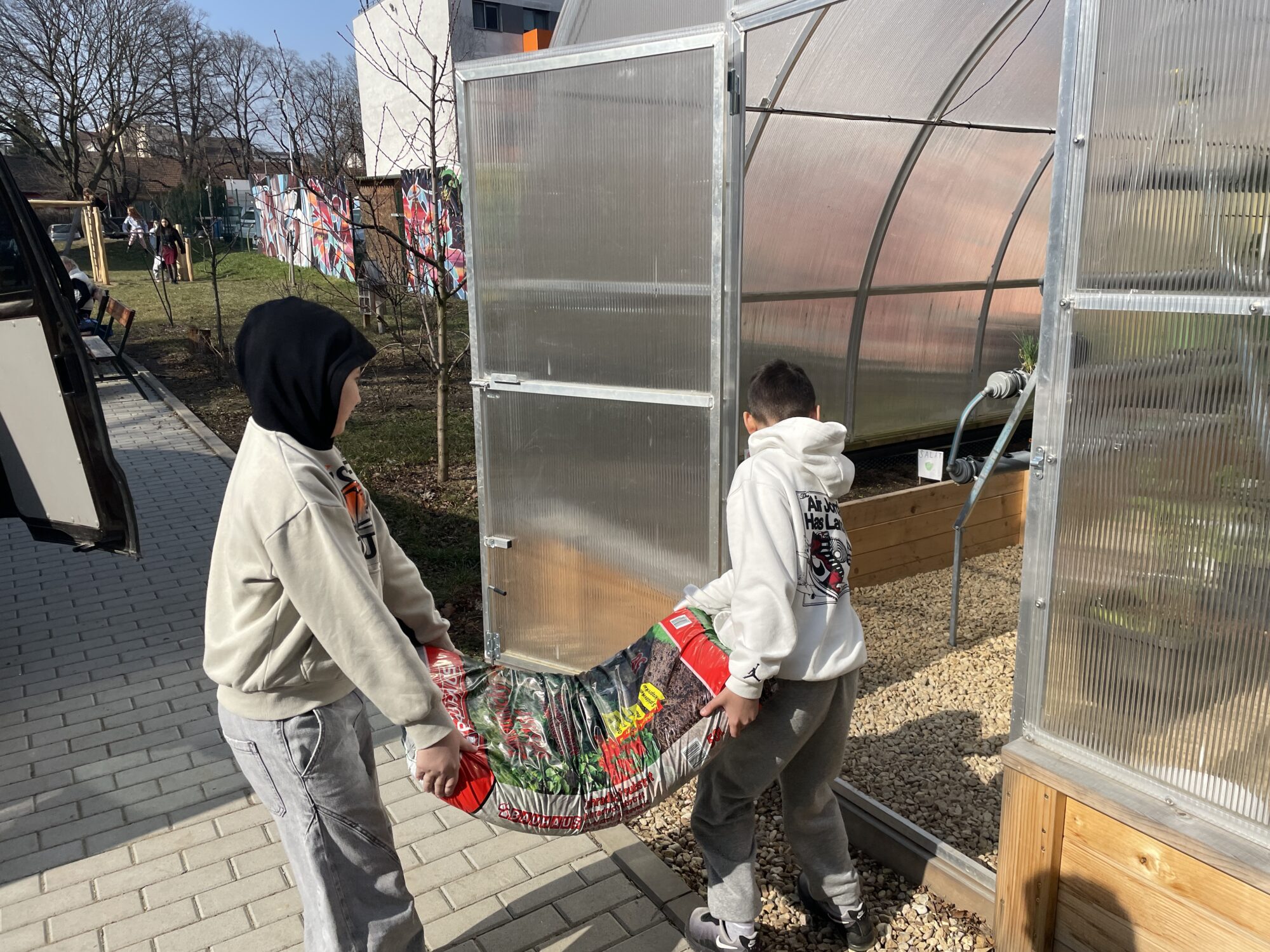 Společně s 3. A jsme vypleli vyvýšené záhony a zaseli do nich ředkvičky, hrách, mrkev a rajčata. 🥕🍅 Kluci pomohli nanosit balíky hlíny do chytrého skleníku. 💪
