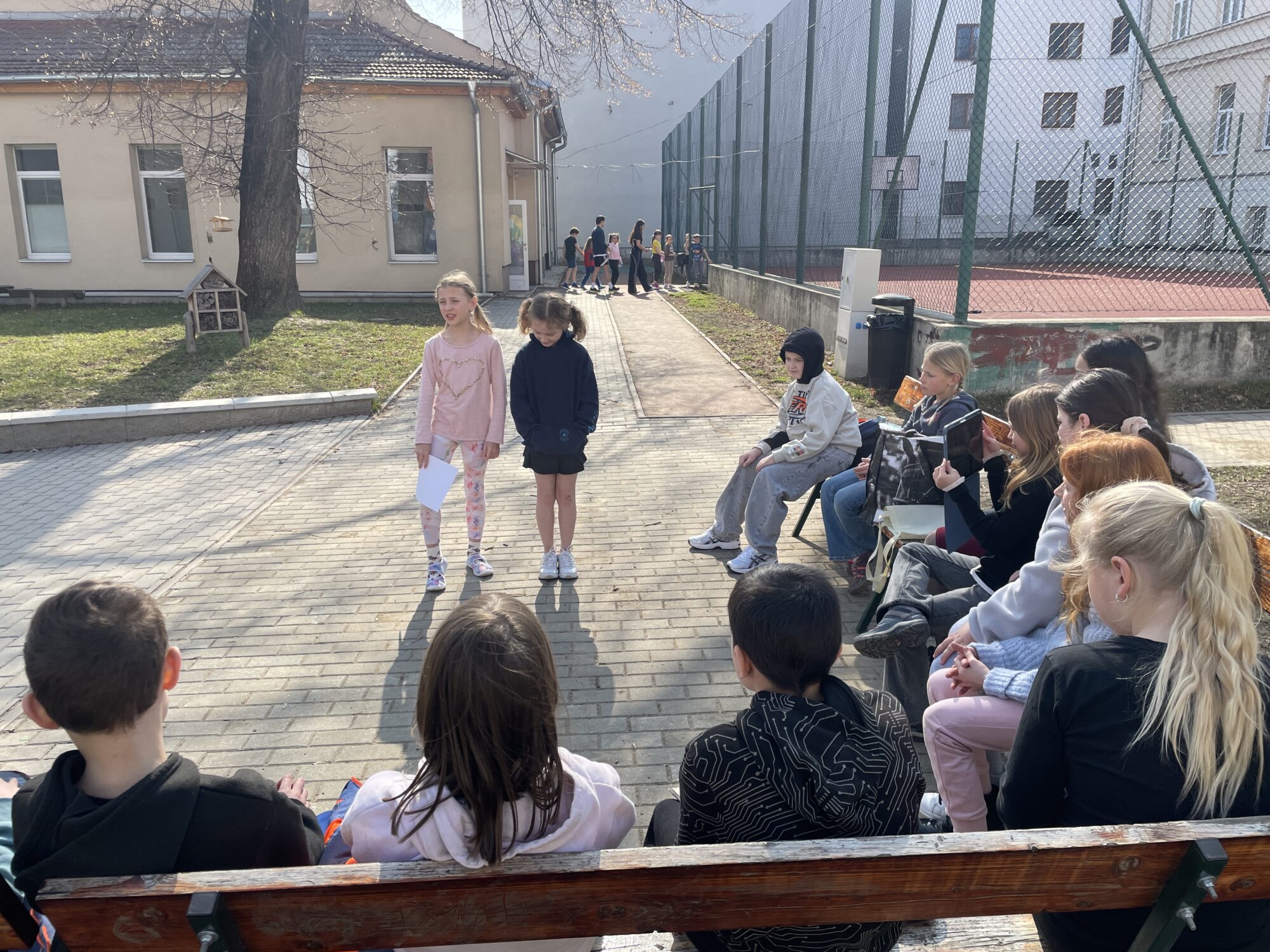 Využíváme krásné předjarní počasí a pestré prostředí školního areálu, abychom přenesli teorii z hodin ČJ, M, PŘ, PV i INF do běžného života a k tomu dýchali svěží vzduch. 😊