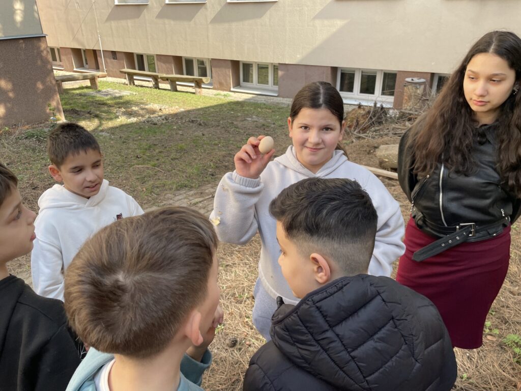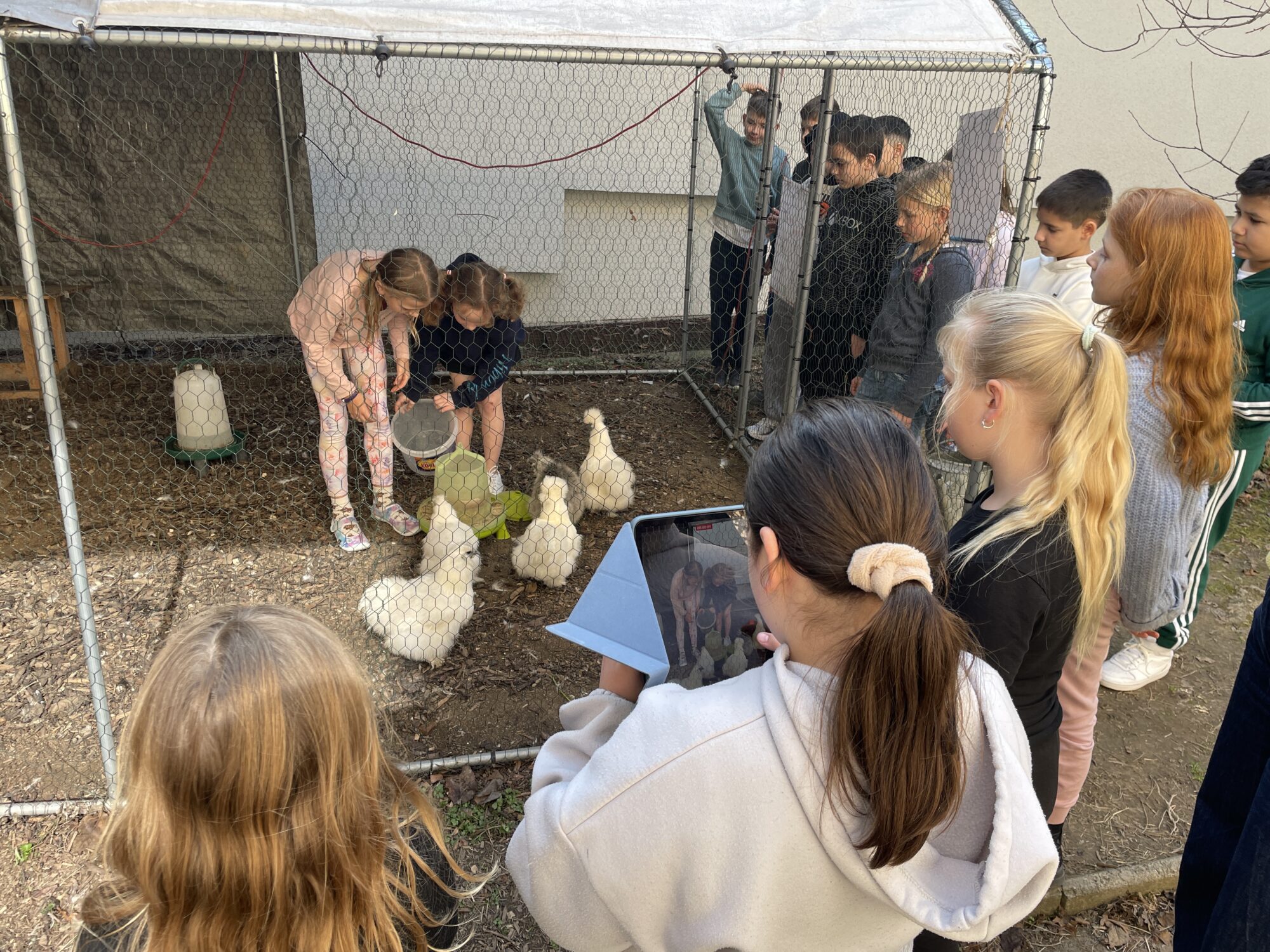 Učíme se spolupracovat i s žáky z jiných tříd. 🤝 Žákyně z 3. B nás seznámily s tím, jak máme správně pečovat každou středu o školní slepice hedvábničky. 🐔 Čím je krmit, jak vyměňovat vodu, jak vybírat a kam ukládat jejich snůšku a jak je opatrně vzít do rukou a zapisovat to do tabulky. 🥚 Vše nám názorně předvedly. Čtvrťáci si to vyzkoušeli, natočili si instruktážní video a napsali pracovní postup péče ve formě plakátu. 🤓