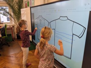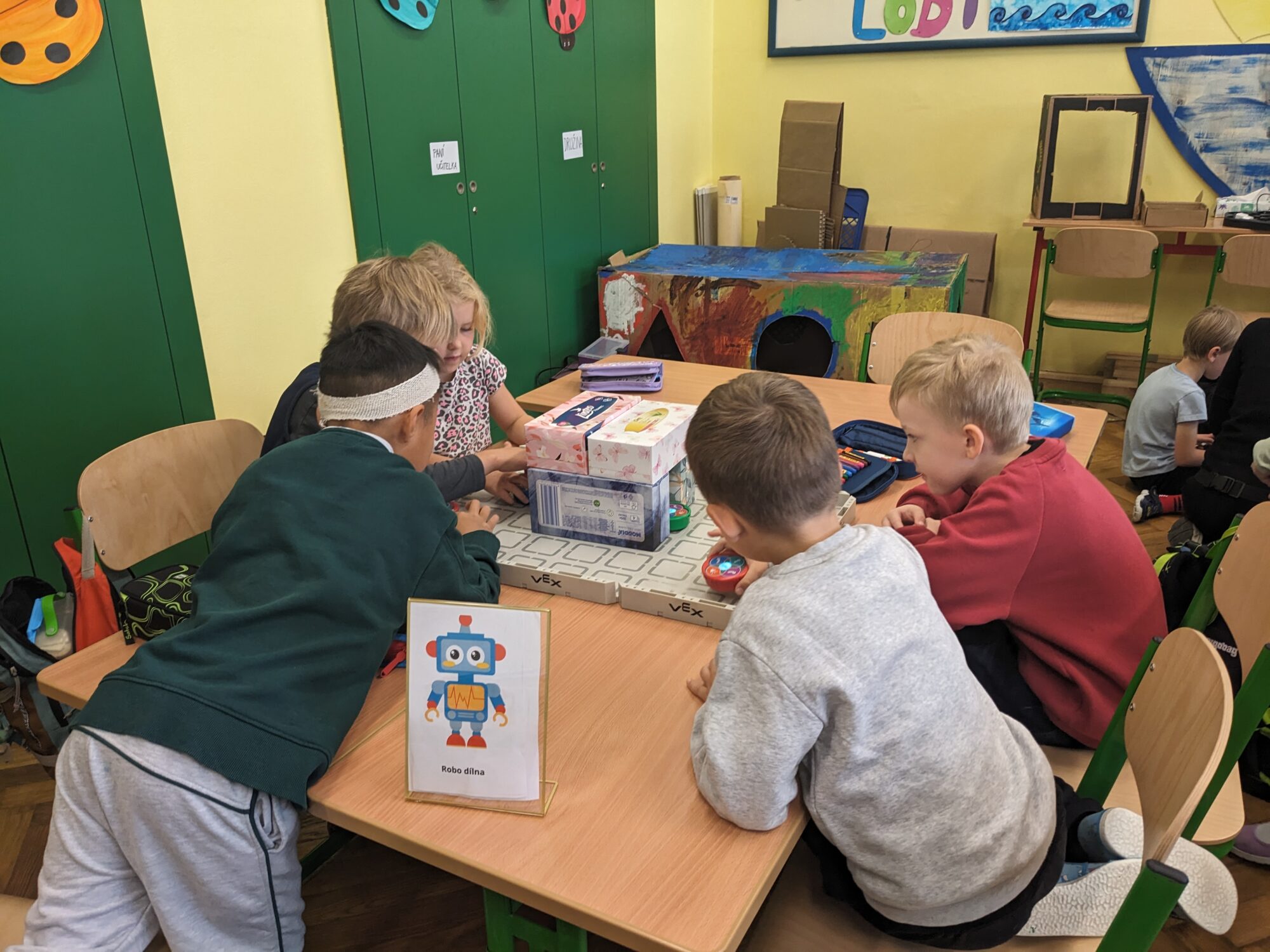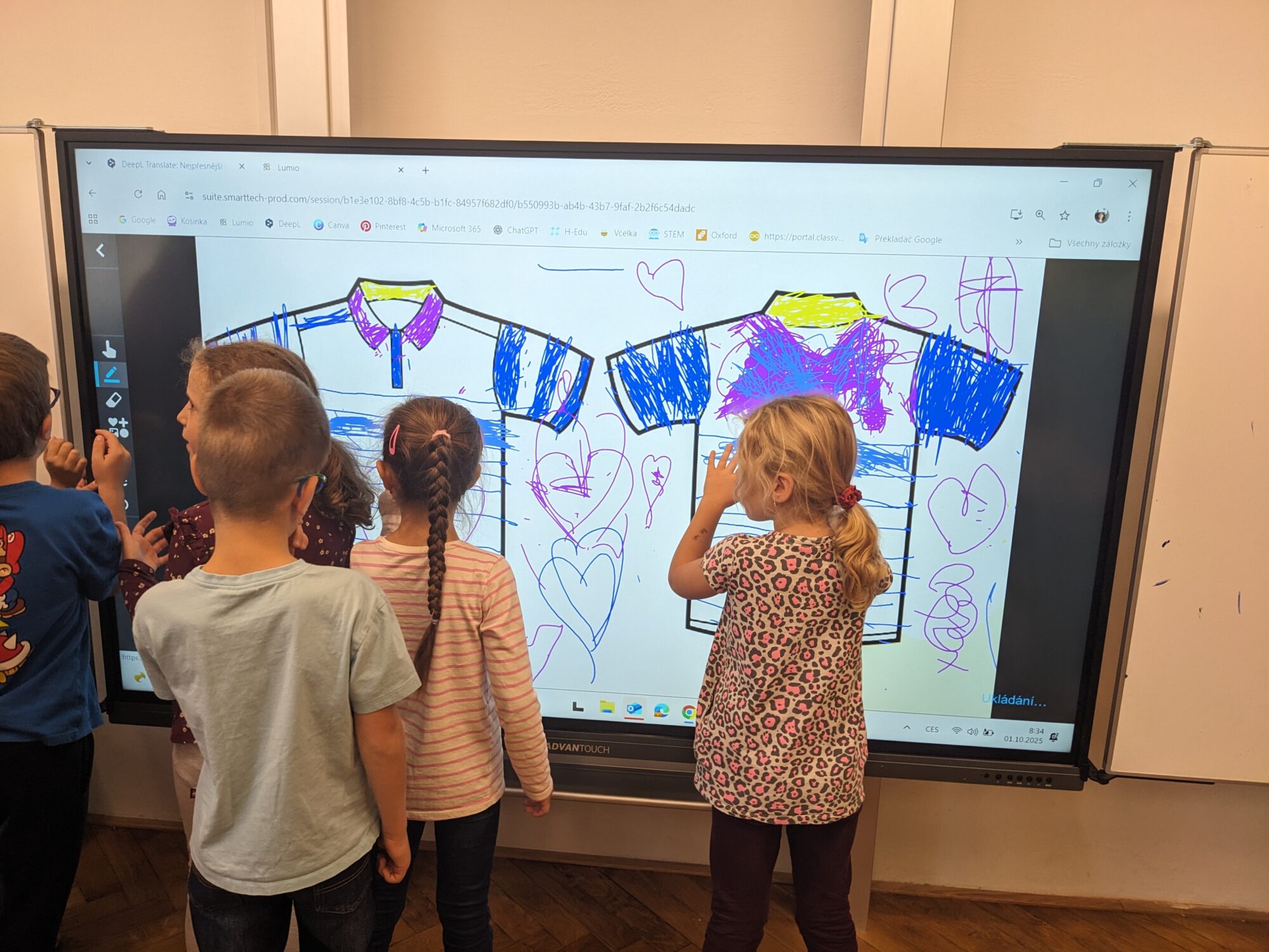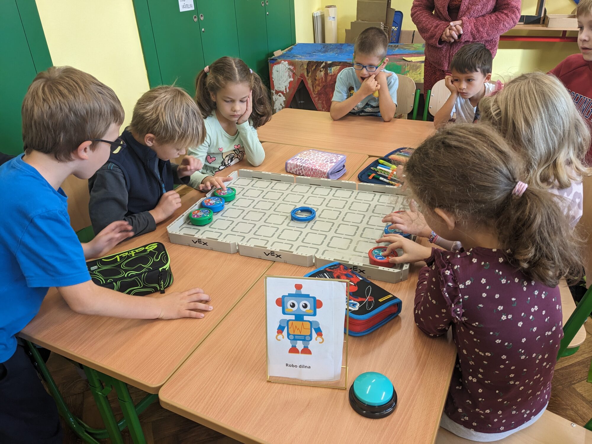 Předškoláci si s námi vytvořili námořnické tričko z papíru, pak ho zkoušeli navrhnout i na interaktivním displeji, seznámili se s Beeboty a roboty VEX 123. 🤖 Prvňáci poté porovnávali, co mají tyto dva druhy robotů společného a v čem se liší.