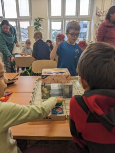 První říjnový den zavítali do 1. B předškoláci z naší školy. 🏫 Prvňáčci jim ukázali naši třídu, plachetnici, domečky, ve kterých můžou relaxovat a hrát si, když se zrovna neučí, a dva druhy robotů.