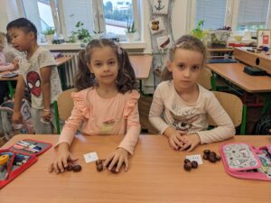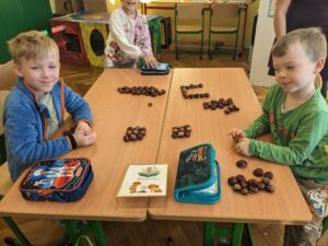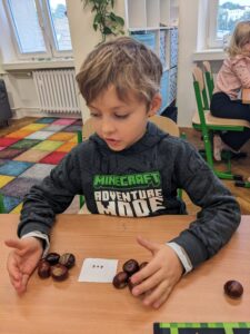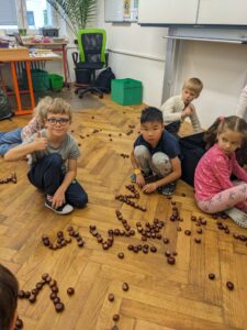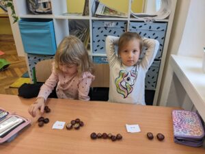 S kaštany jsme i hodnotili, jak se nám líbilo v centrech. Překvapilo mě, že děti kaštany v podstatě rovnoměrně rozdělily a z toho mám opravdu radost.