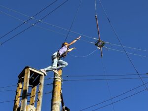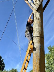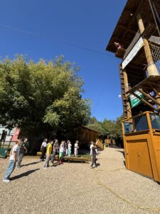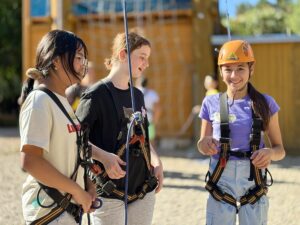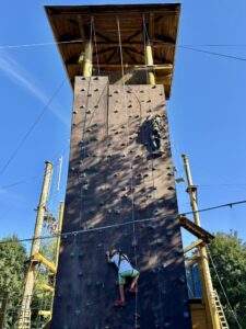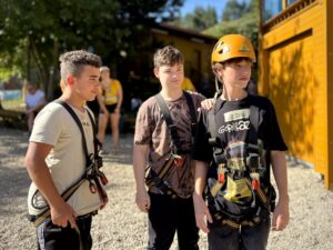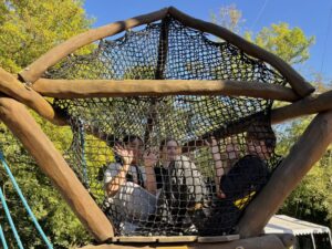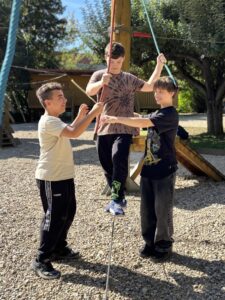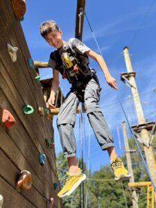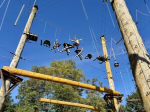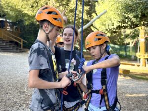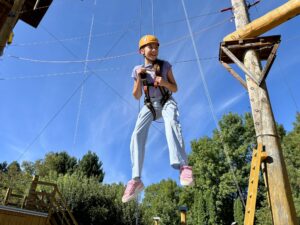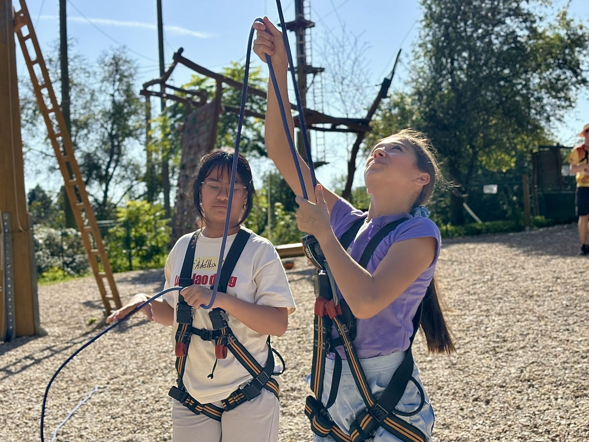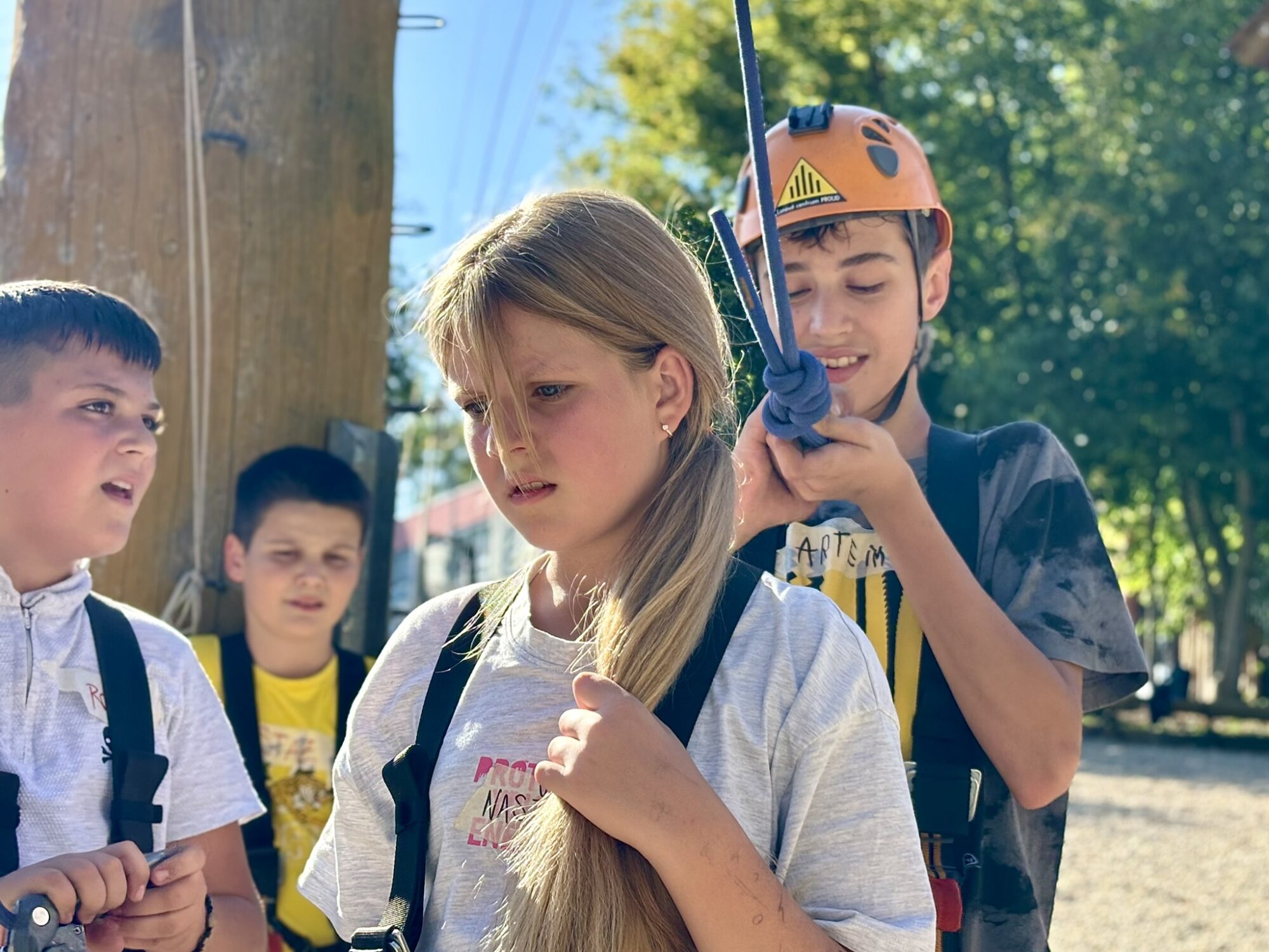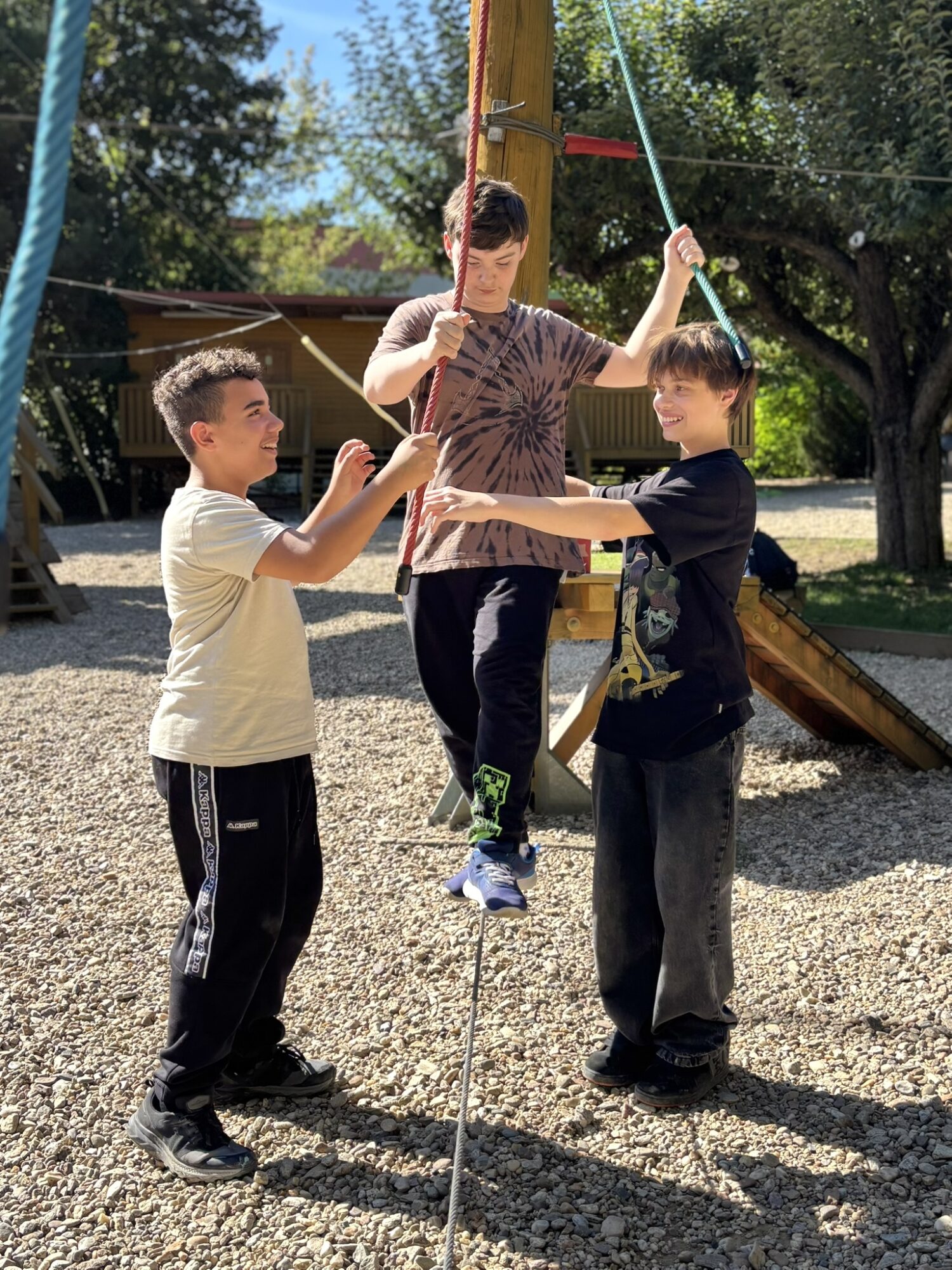 Po obědě již přišla řada na dlouho očekávanou část dne – lezení do výšek. 🙌 ☁Nejprve jsme si vše vyzkoušeli na nižších překážkách, kde jsme se učili spoléhat na kamarády, kteří nás jistili. A pak už šlo do tuhého! Po důkladném zaškolení jsme se vydali na vysoké překážky, kde jsme svoji bezpečnost doslova odevzdali do rukou kamarádům. 👐 I tady jsme se totiž jistili navzájem. Překážky nad námi zpočátku vyhrávaly. 😥 Ze země se nám všechny zdály jednoduché, ale při jejich zdolávání jsme brzy naráželi na své limity. 😬