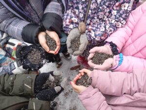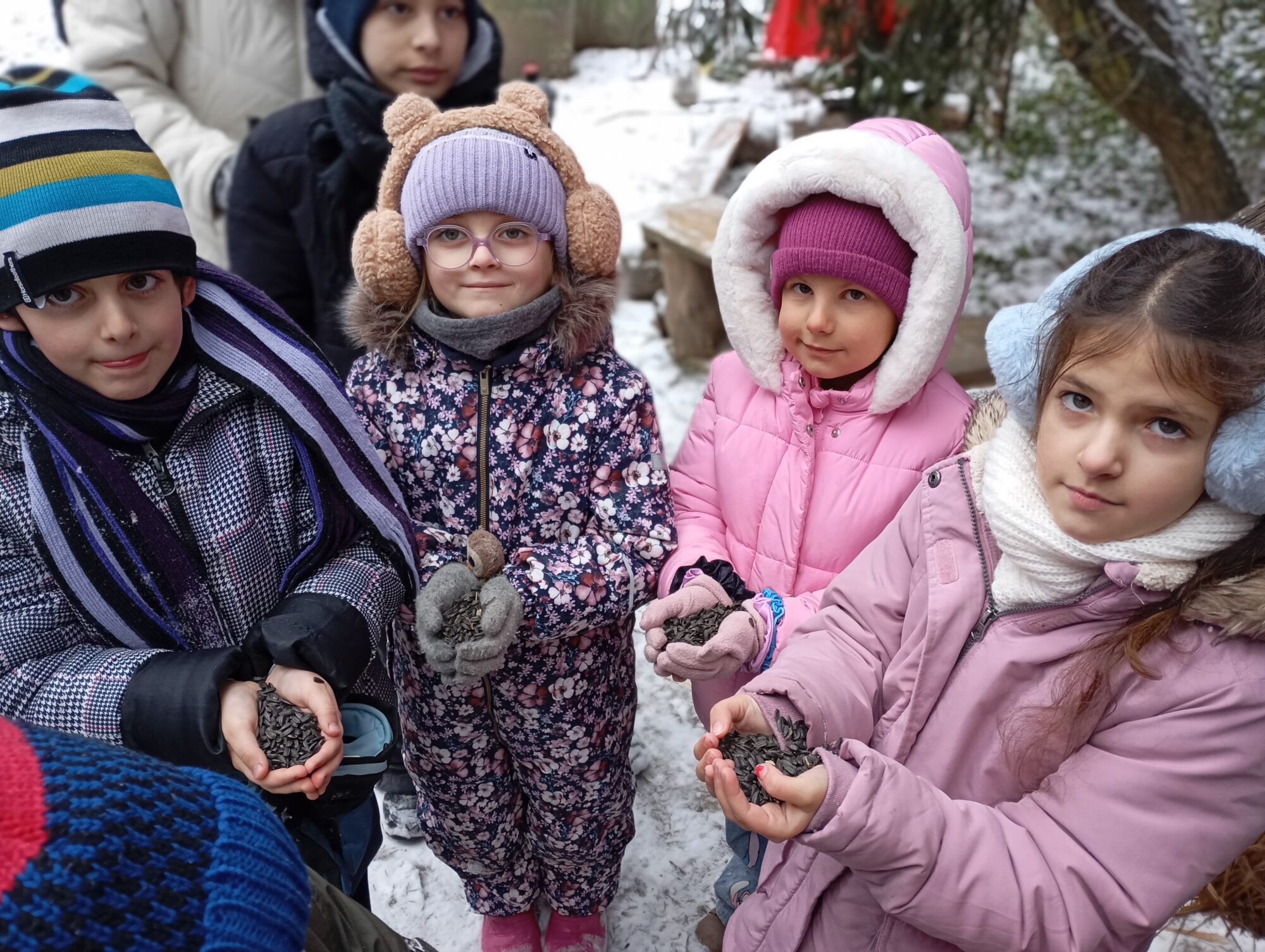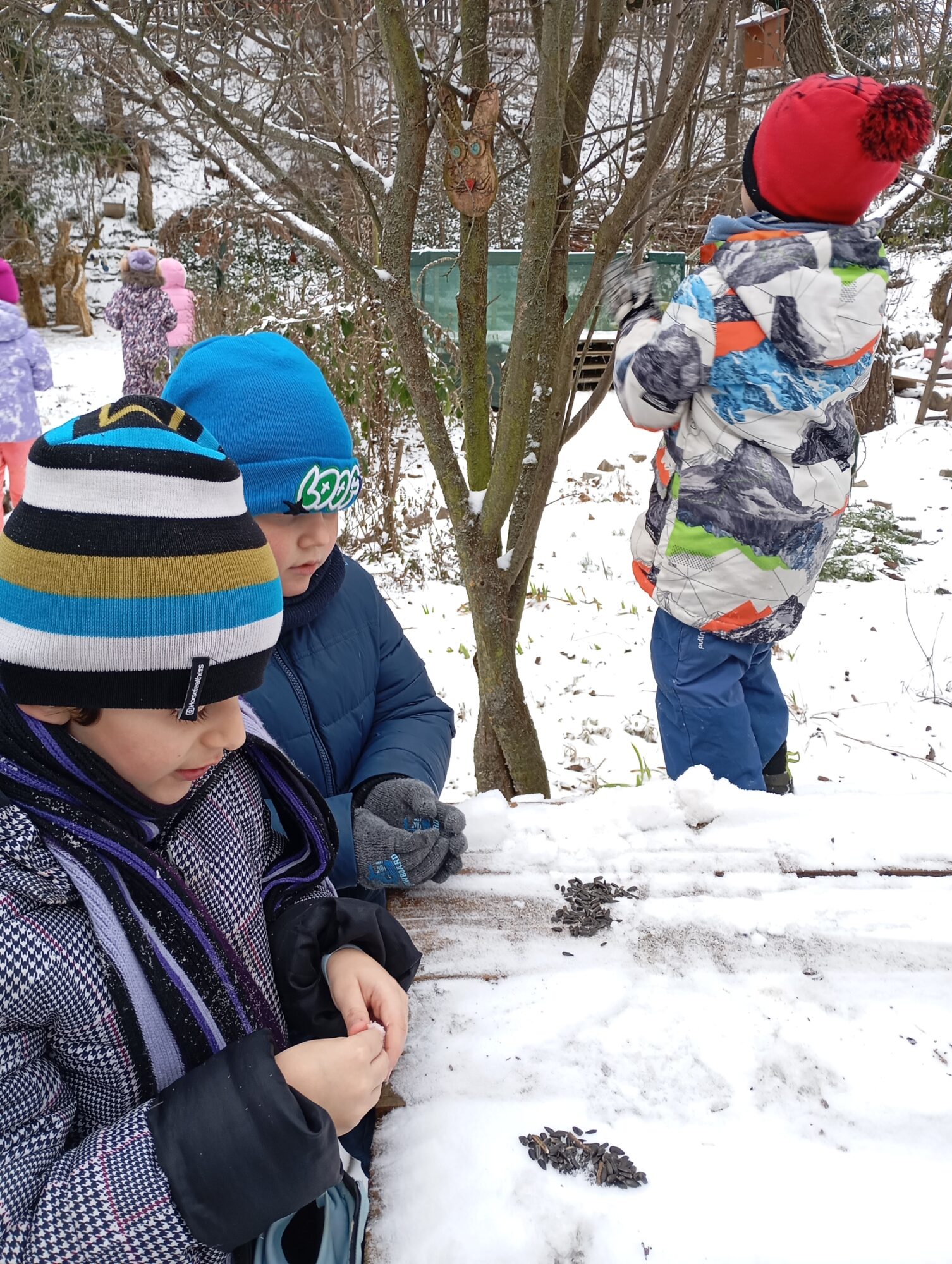 V pátek 9. 1. družina 2 navštívila přírodní zahradu u smrku. 🌲 Prohlédli jsme si betlém ze slámy i prostory celé zahrady. 🌸🌳 Děti se zapojily se zájmem do krmení ptáčků a pobyt v přírodě si velmi užily. 🐦☺️