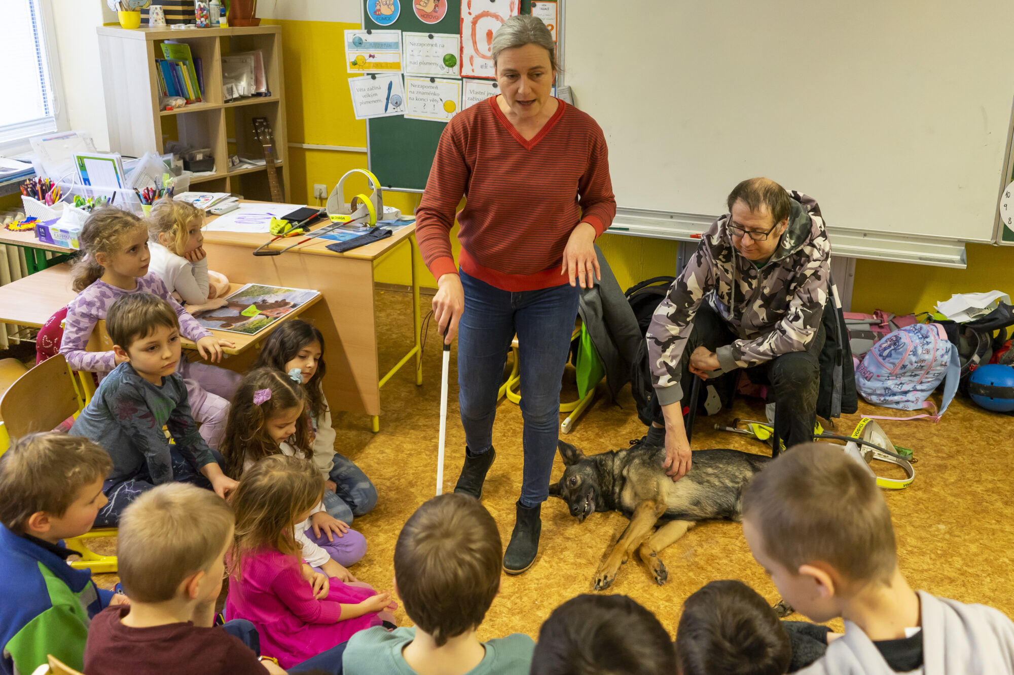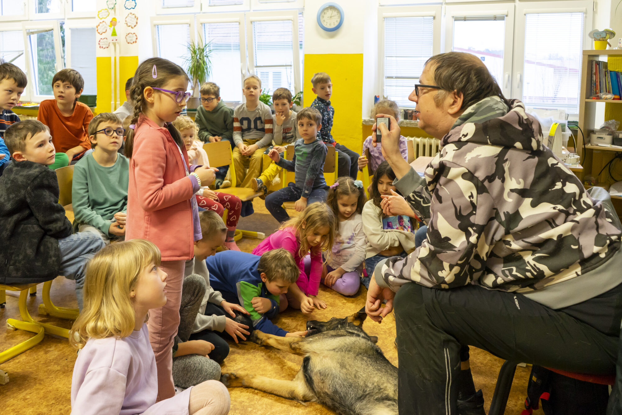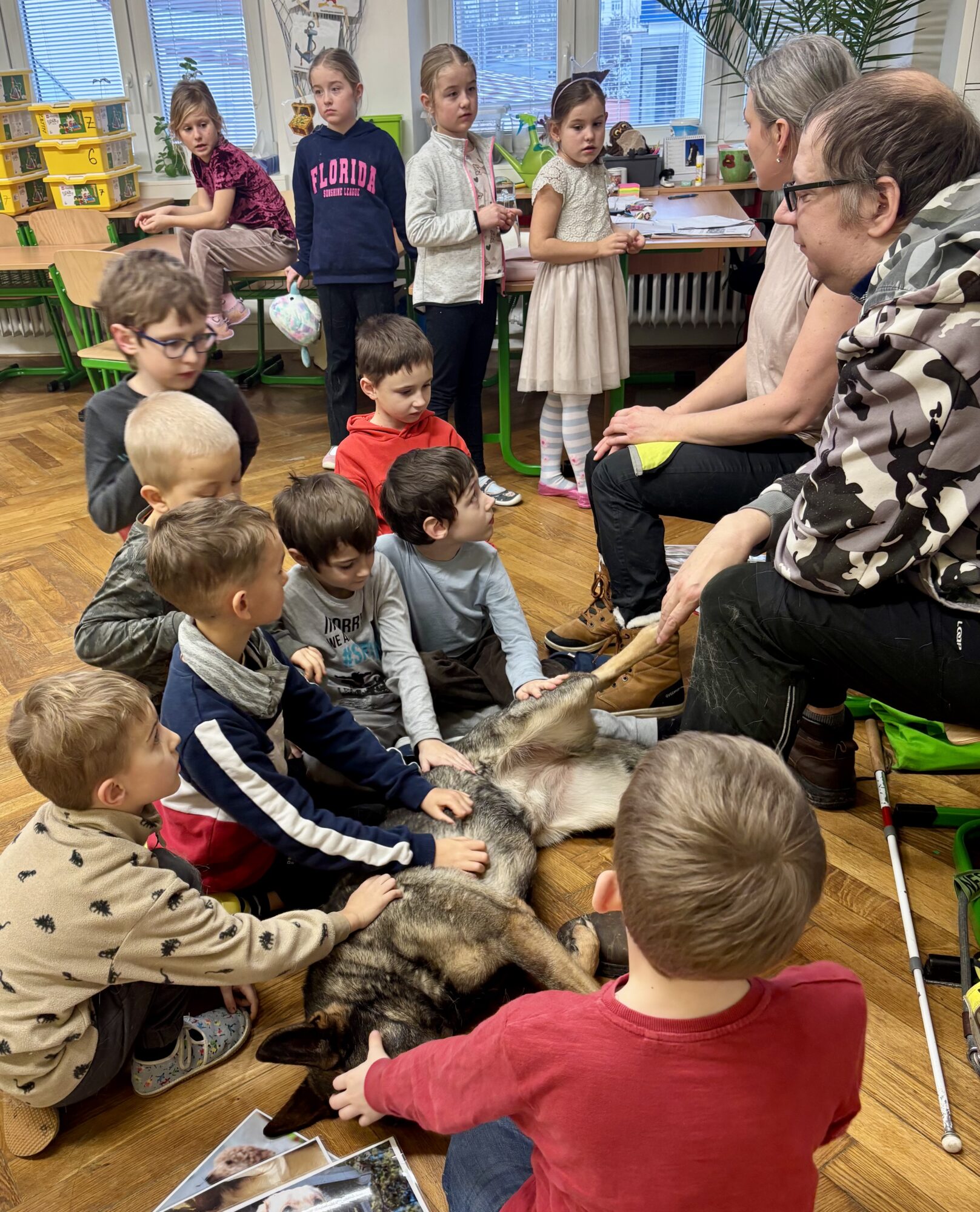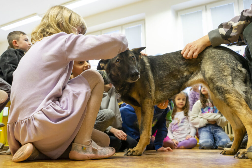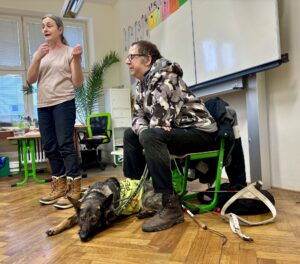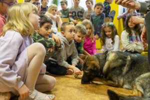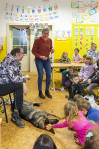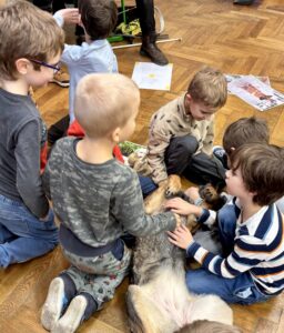 V únoru jsme v družině přivítali asistenčního pejska spolu s páníčkem a cvičitelkou z organizace Vodicí pes. Dozvěděli jsme se spoustu nových informací, už víme, jak se chovat při setkání s nevidomými a jejich čtyřnohými přáteli. A také jsme se s pejskem řádně potulili. ❤️😀🐶 Moc děkujeme! 🌸