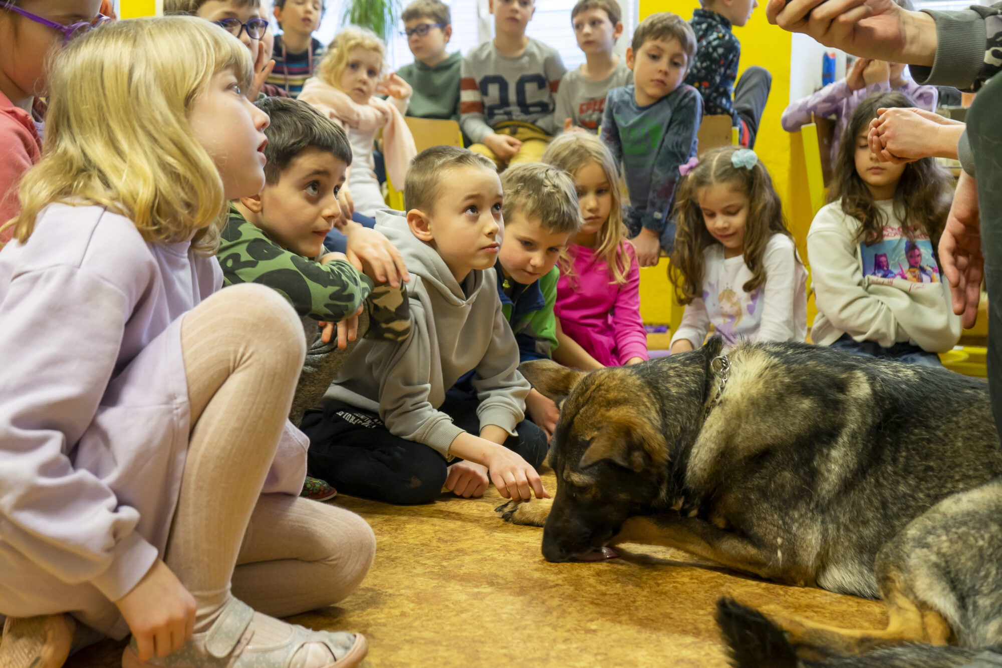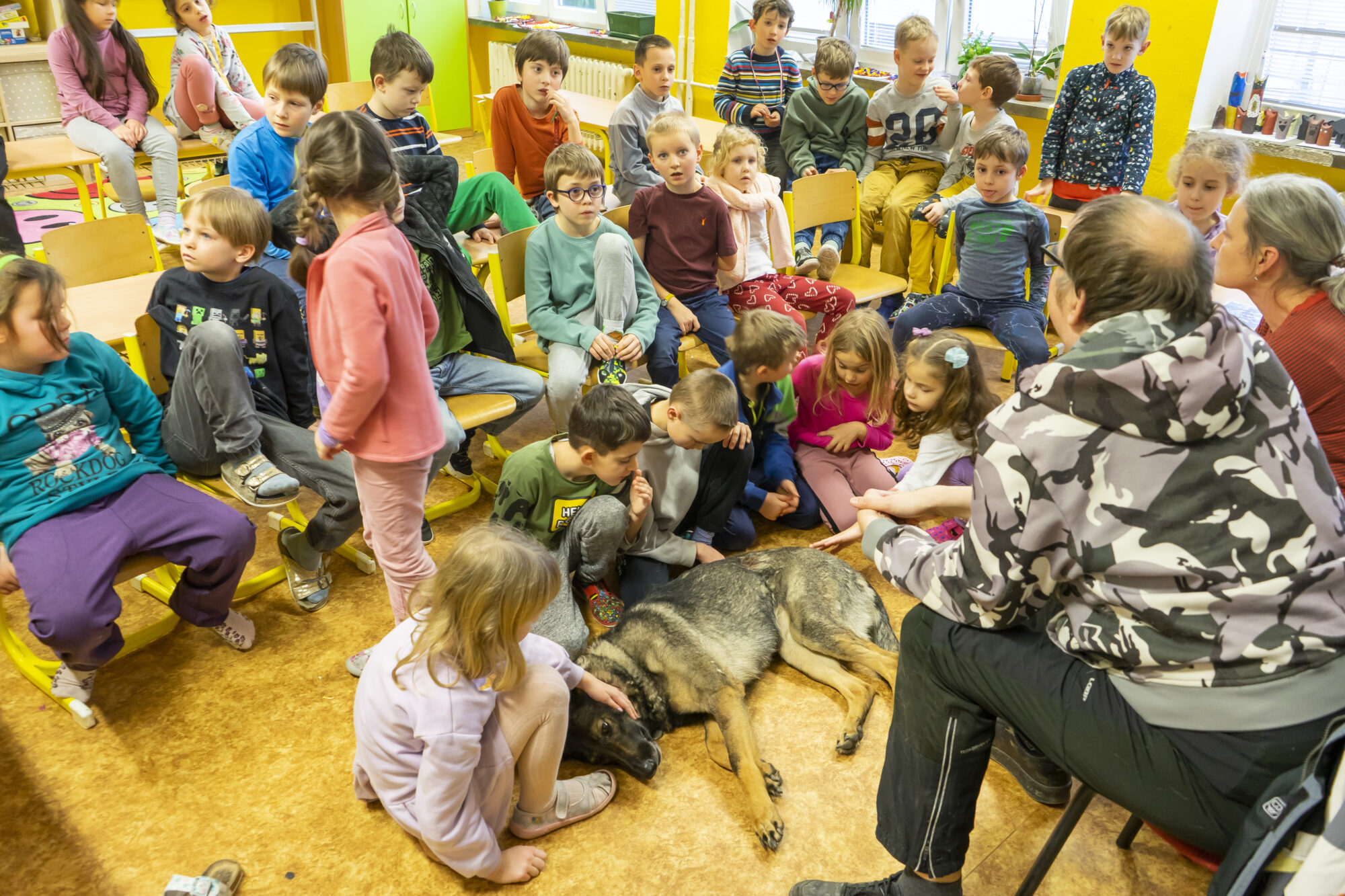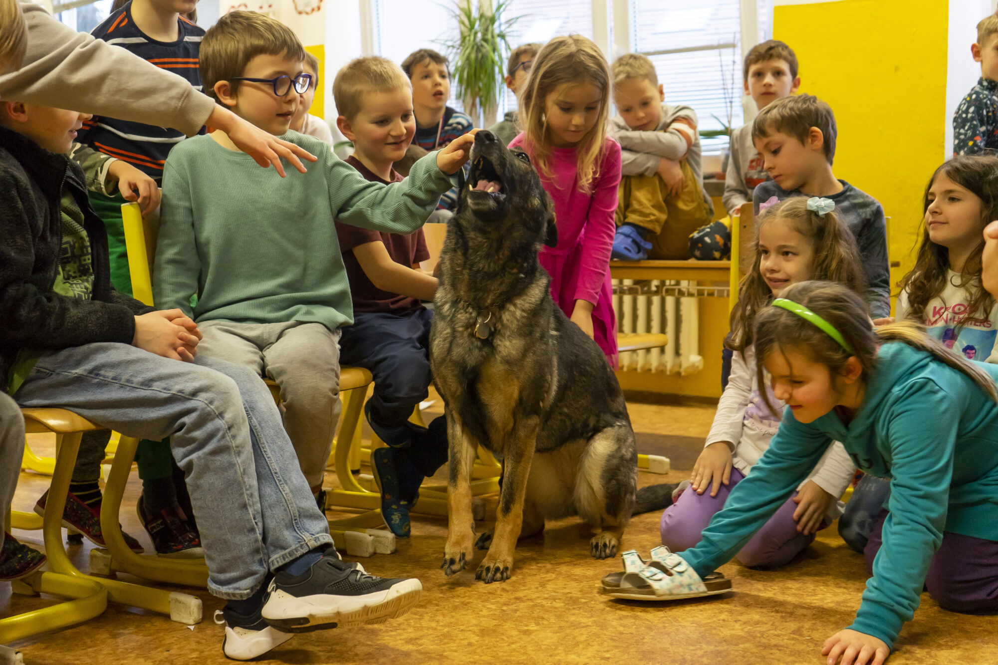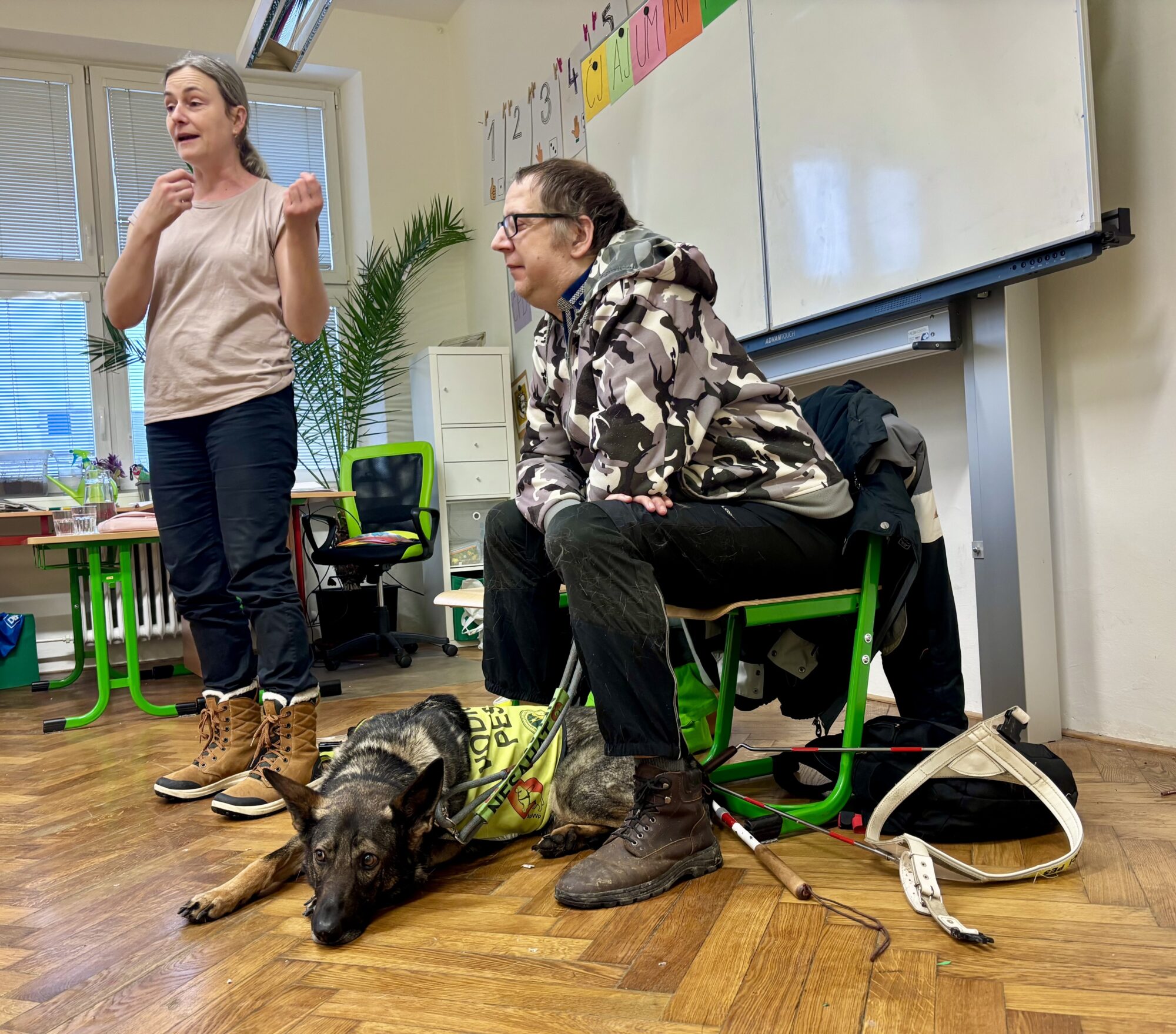 V únoru jsme v družině přivítali asistenčního pejska spolu s páníčkem a cvičitelkou z organizace Vodicí pes. Dozvěděli jsme se spoustu nových informací, už víme, jak se chovat při setkání s nevidomými a jejich čtyřnohými přáteli. A také jsme se s pejskem řádně potulili. ❤️😀🐶 Moc děkujeme! 🌸