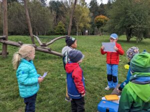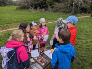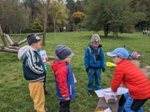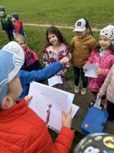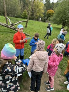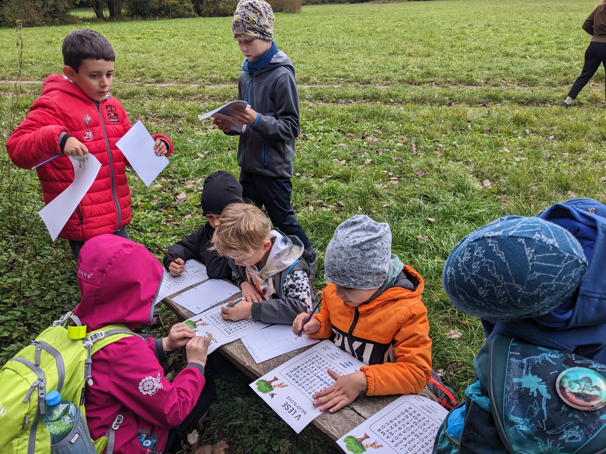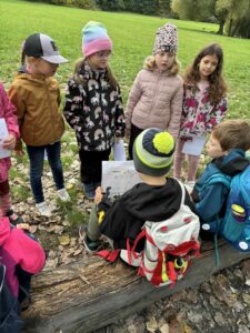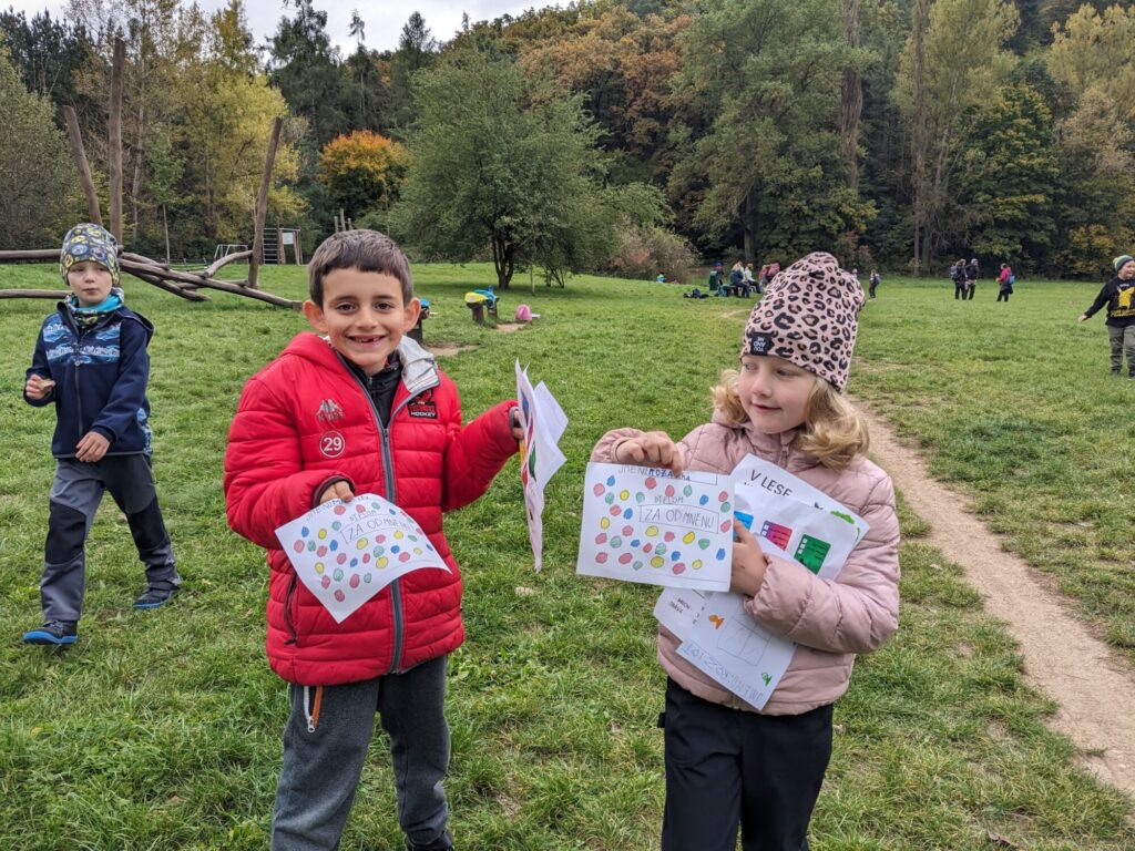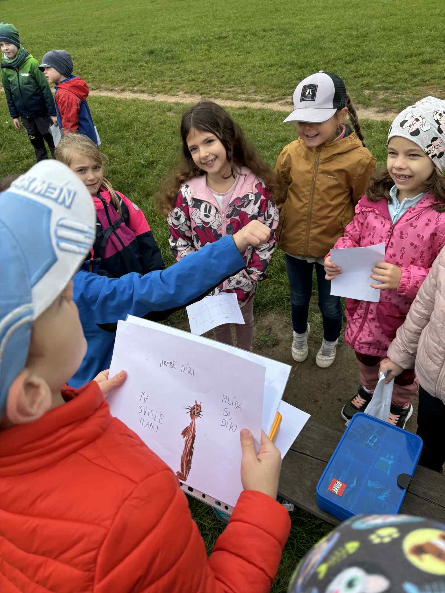 Celou terénní výuku pro prvňáčky si totiž připravili druháci úplně sami — a zvládli to úžasně! Druháci vymysleli stanoviště s úkoly, vytvořili pracovní listy i kartičky, kde prvňáčkům za splněné úkoly dělali fajfky ✅. Nezapomněli ani na diplomy pro všechny účastníky! 🏅