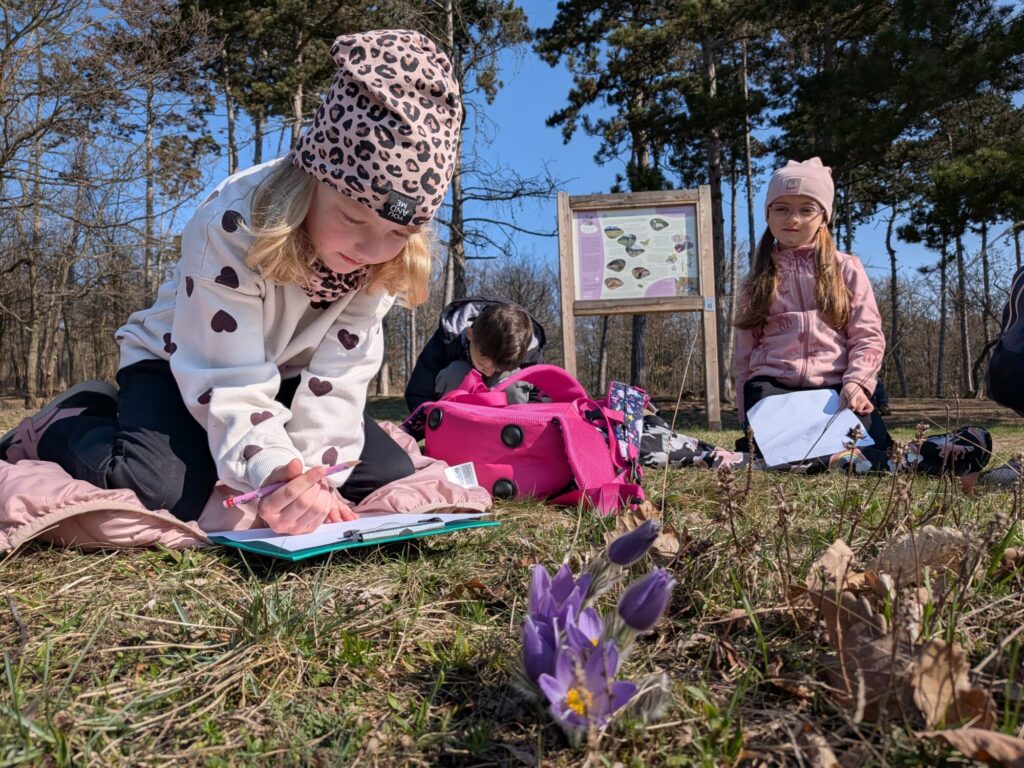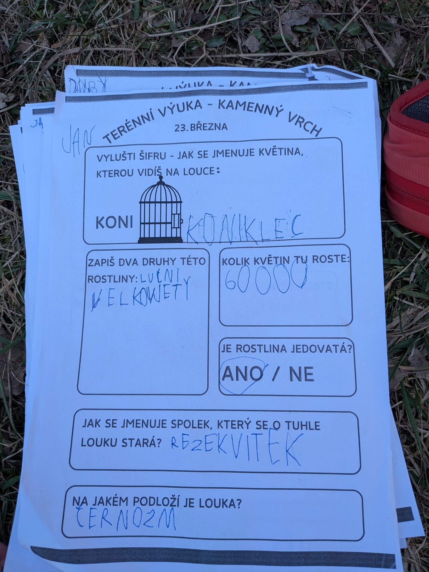 Děti tam zjišťovaly, jaké druhy koniklece tam právě kvetou, na jakém podloží se louka vyskytuje, jestli je rostlina jedovatá, jak dlouho je oblast chráněná a kdo se o ni stará. Také jsme si vysvětlovaly, že je tato oblast naprostou raritou a na světě nemá obdoby. 🤩