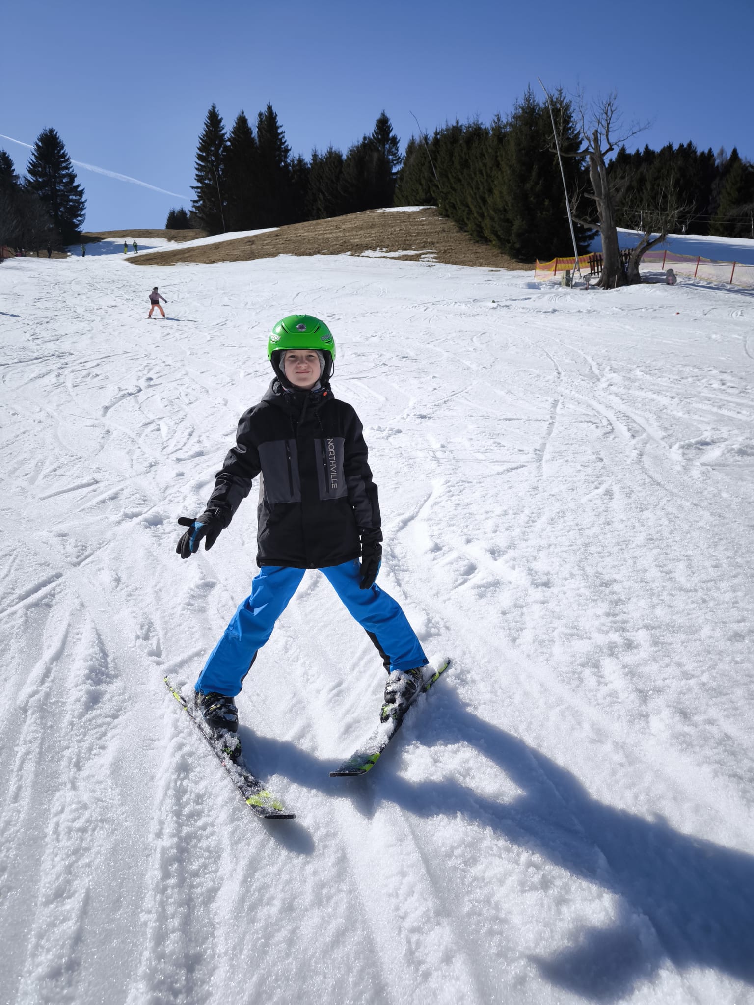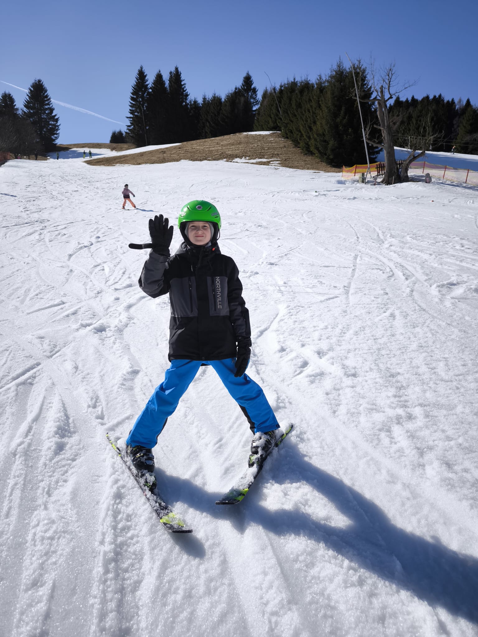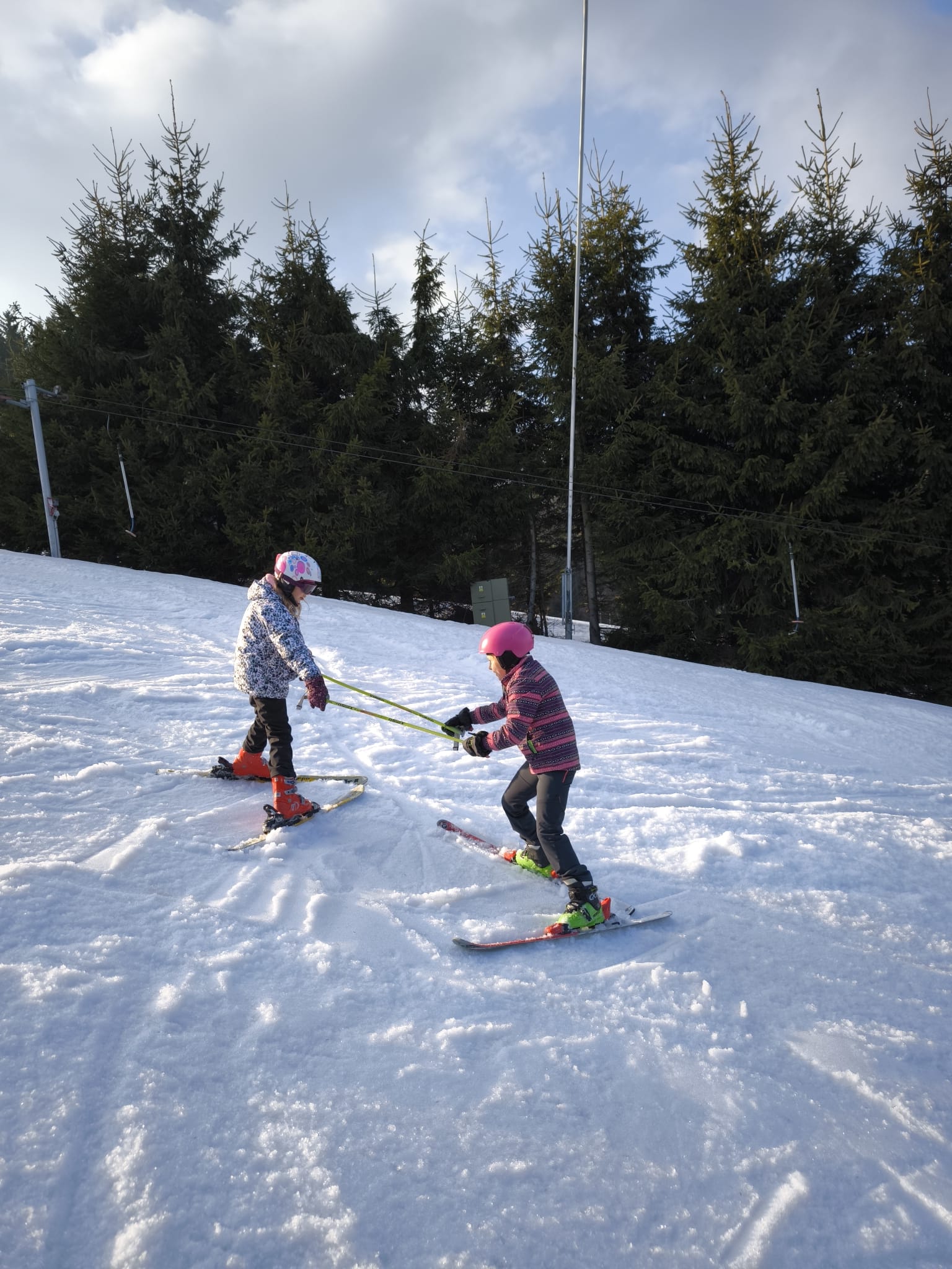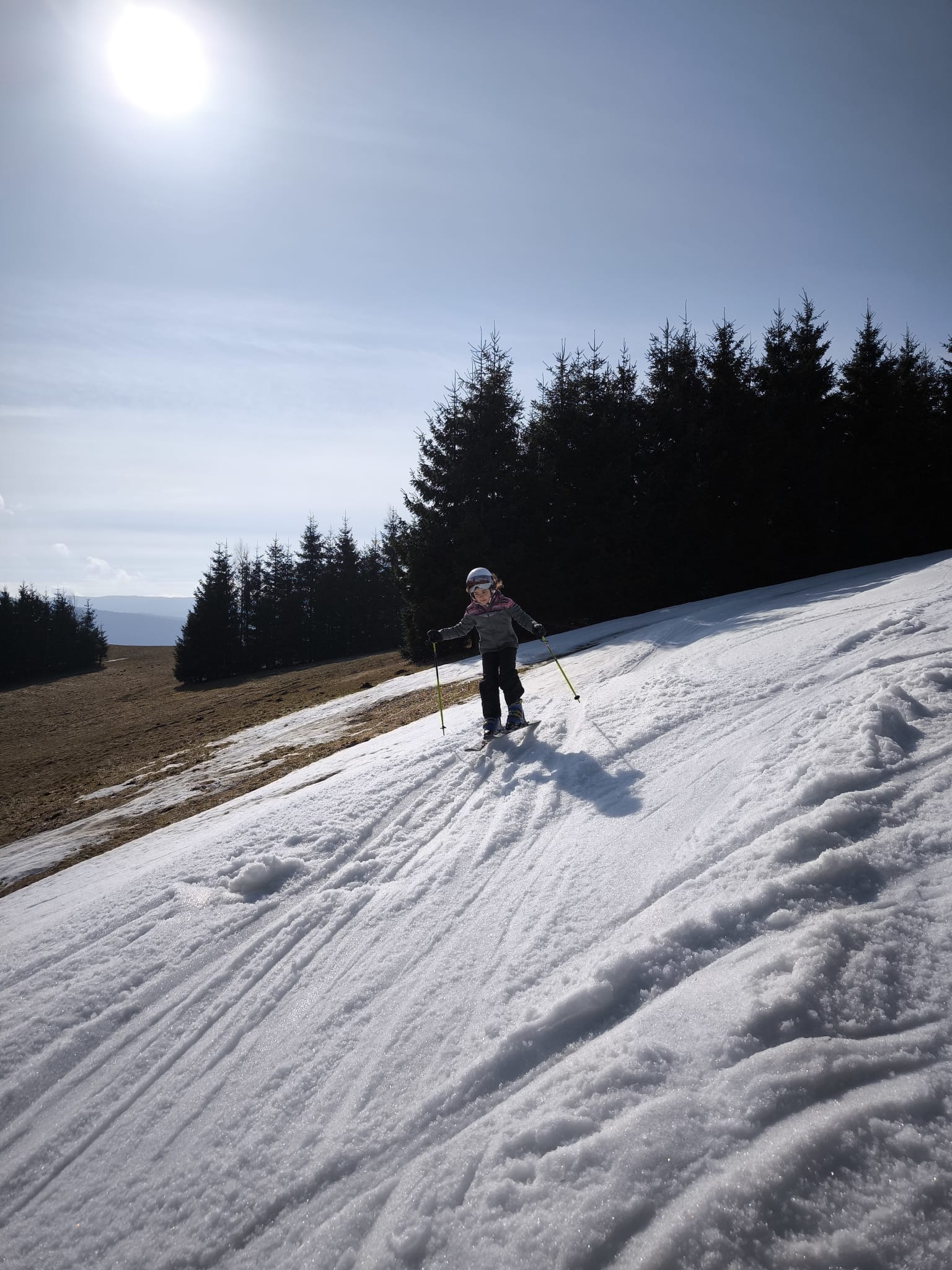 Druhý den už patřil prvnímu kontaktu se sjezdovkou. 🏂 Některé děti stály na lyžích úplně poprvé, a tak se učily od úplných základů, zatímco zkušenější lyžaři si mohli vyzkoušet jízdu na velké sjezdovce. 🤩 I když sněhu v okolí nebylo mnoho a počasí už připomínalo jaro, sjezdovka byla v dobrém stavu a lyžování nám nic nezkazilo. 😎