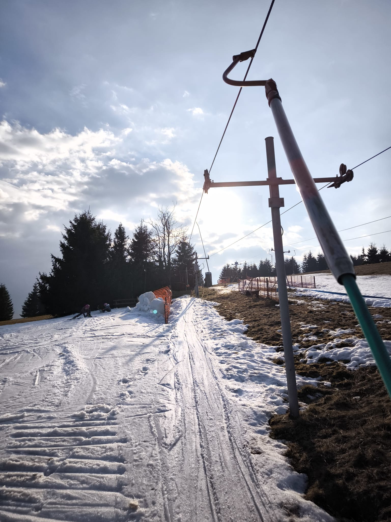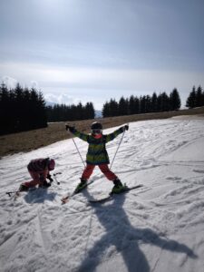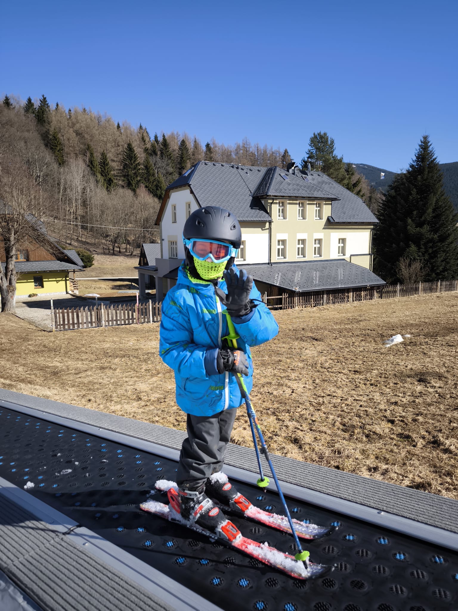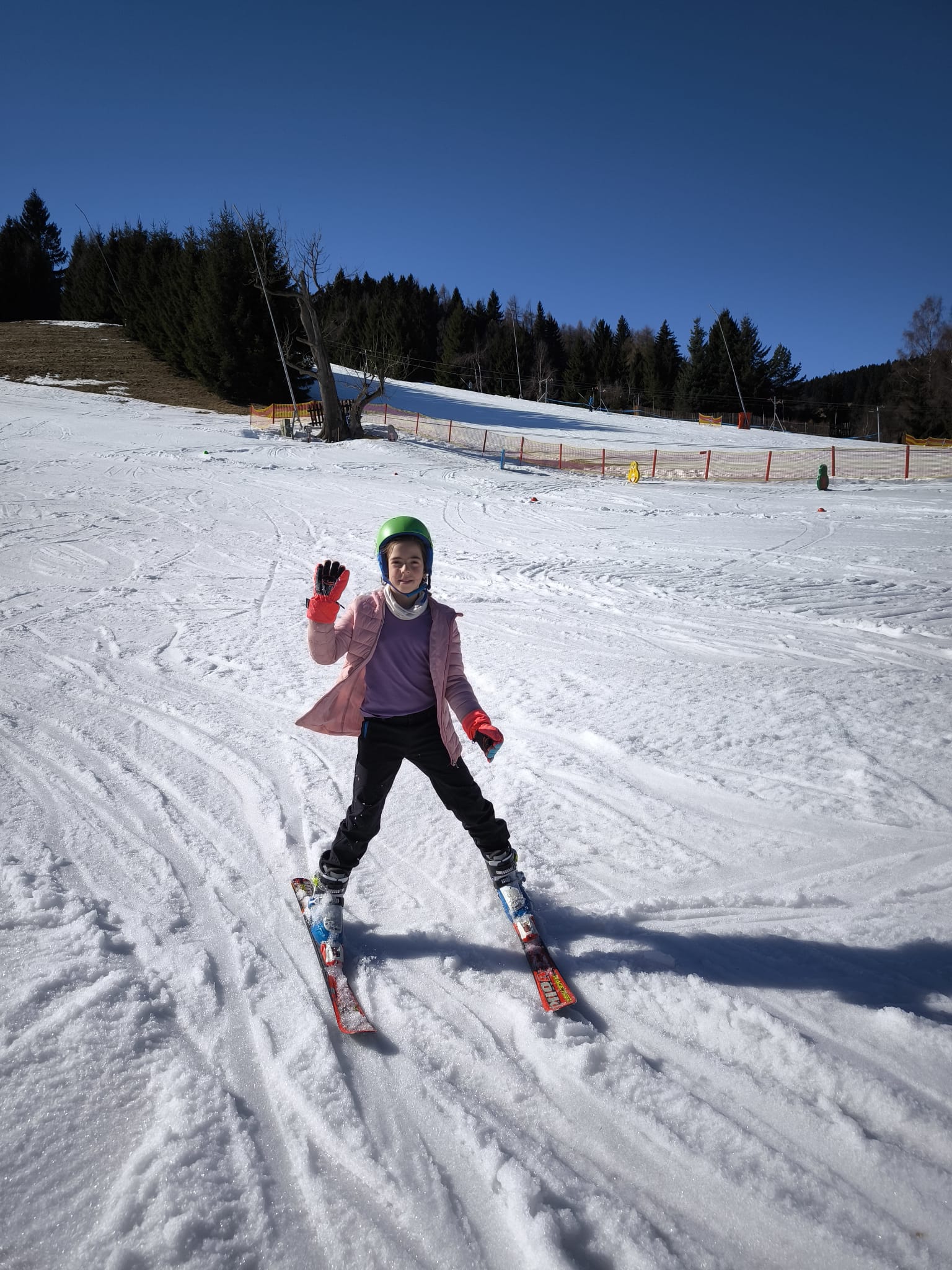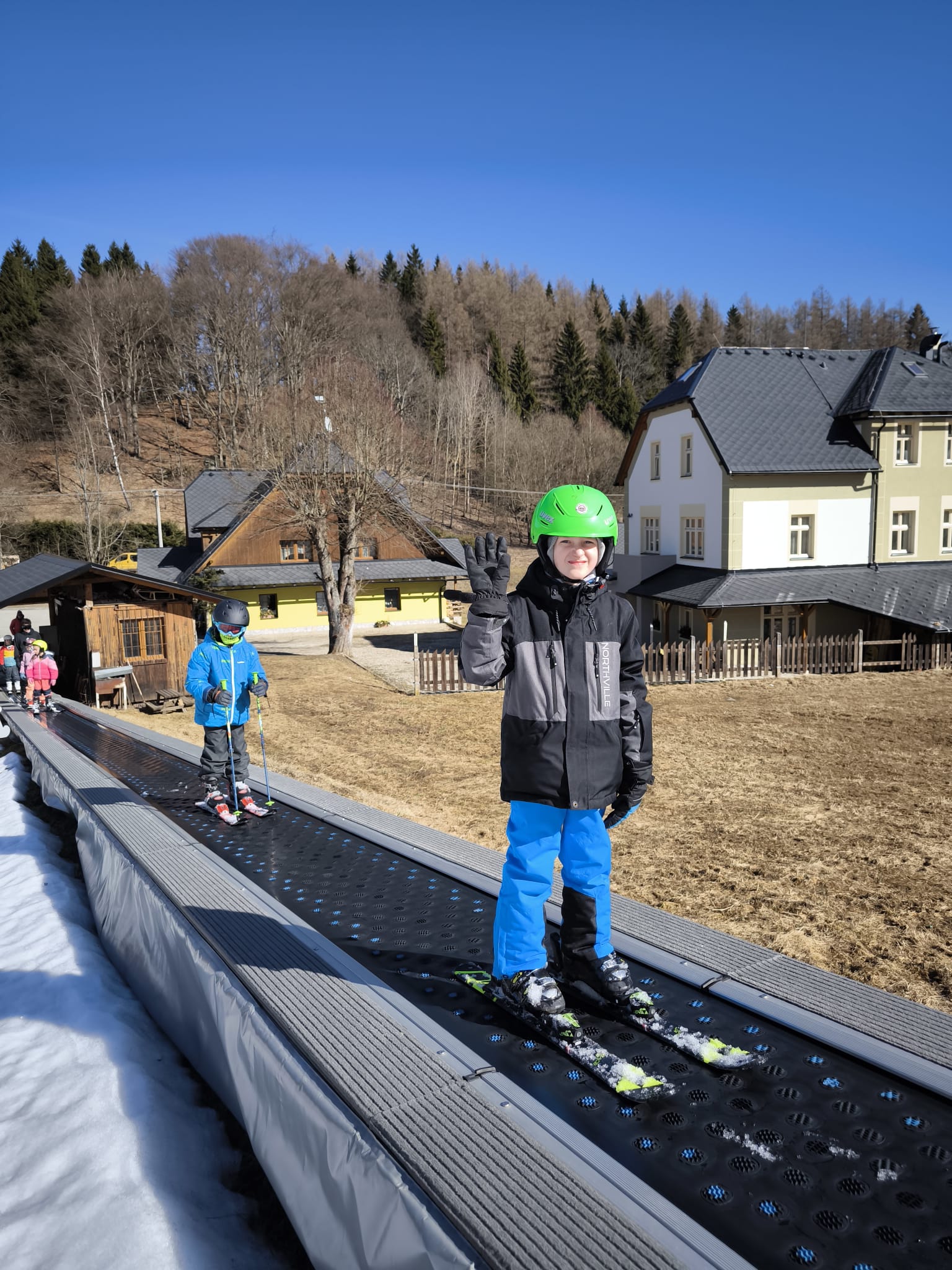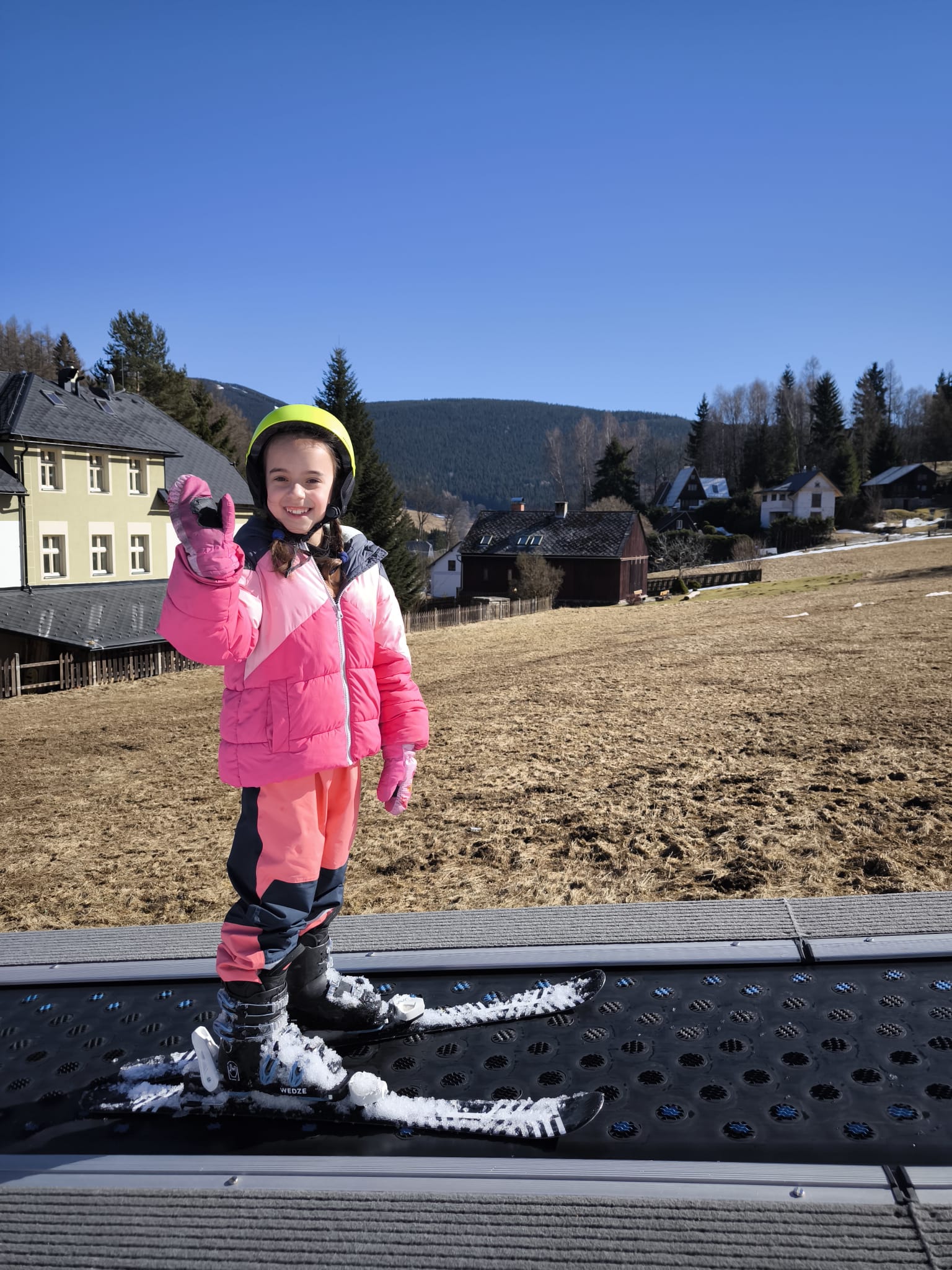 Druhý den už patřil prvnímu kontaktu se sjezdovkou. 🏂 Některé děti stály na lyžích úplně poprvé, a tak se učily od úplných základů, zatímco zkušenější lyžaři si mohli vyzkoušet jízdu na velké sjezdovce. 🤩 I když sněhu v okolí nebylo mnoho a počasí už připomínalo jaro, sjezdovka byla v dobrém stavu a lyžování nám nic nezkazilo. 😎