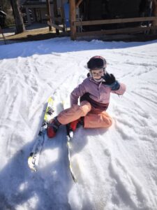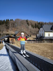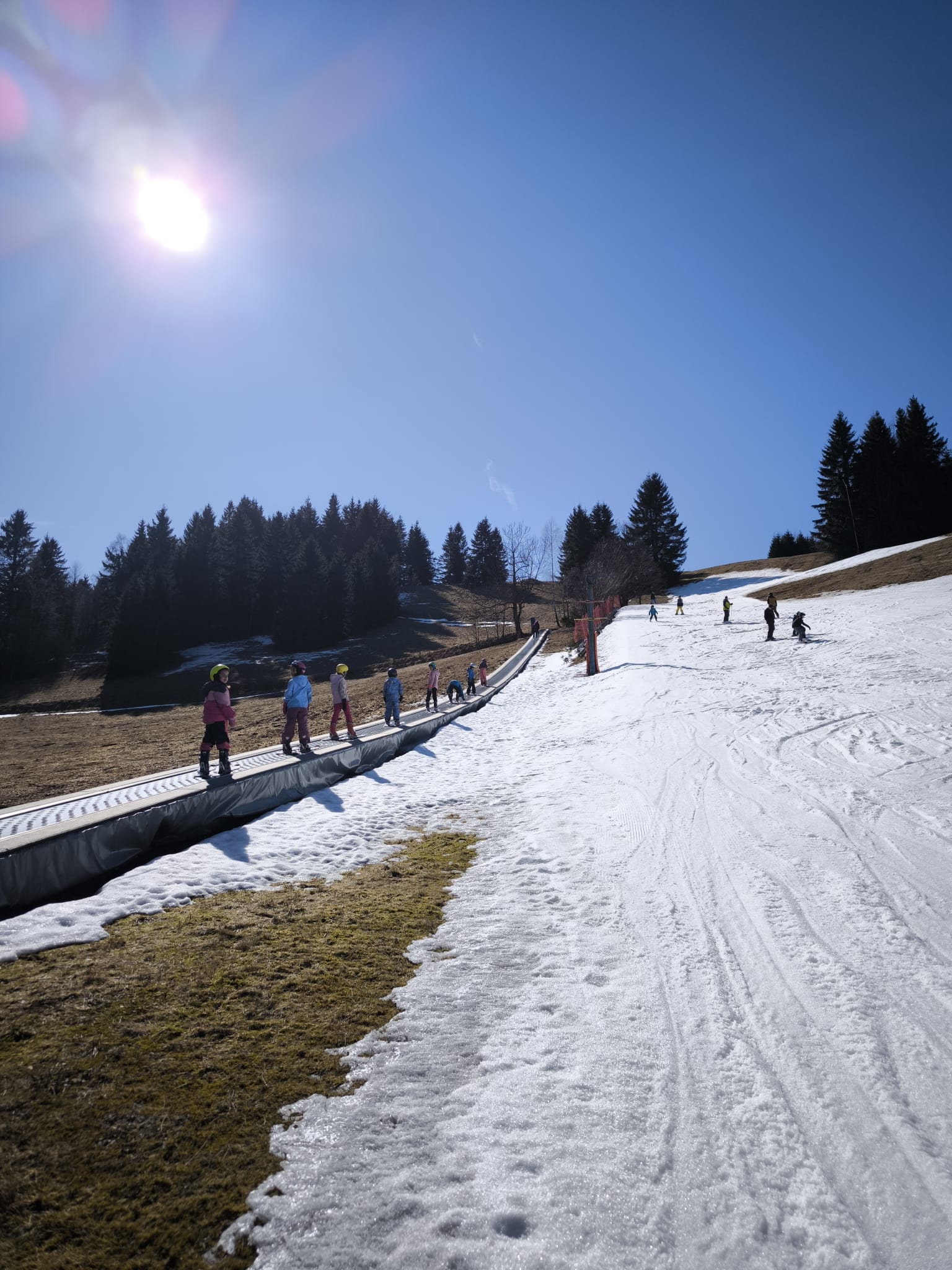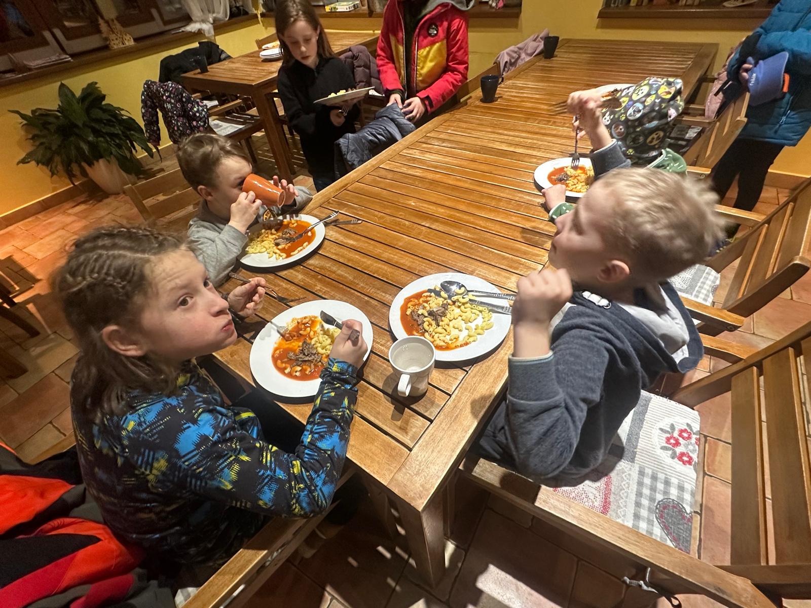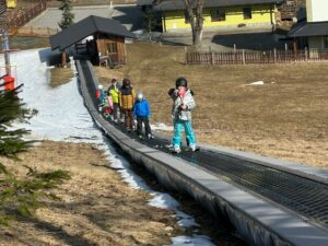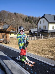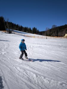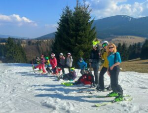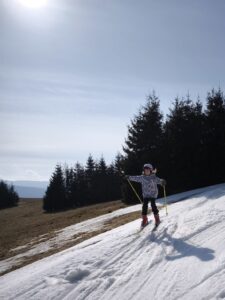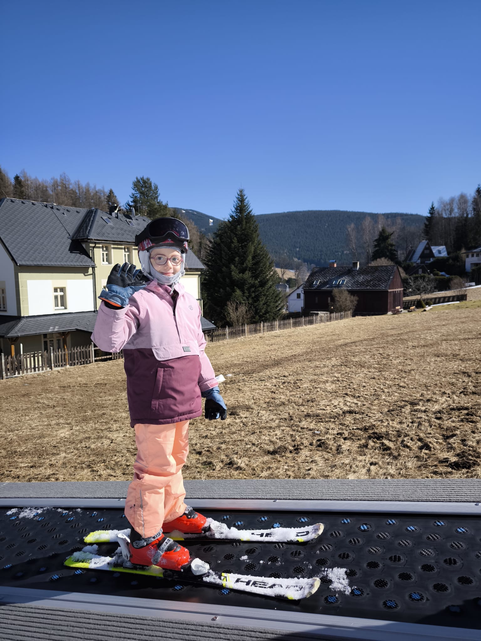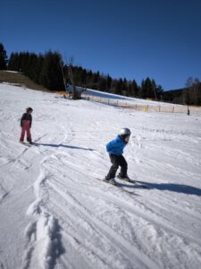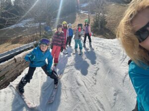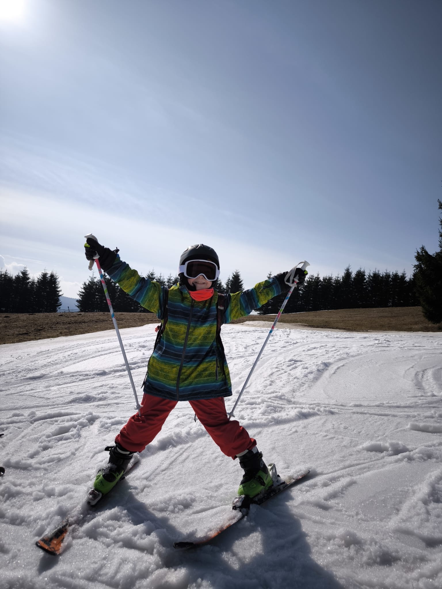 Druhý den už patřil prvnímu kontaktu se sjezdovkou. 🏂 Některé děti stály na lyžích úplně poprvé, a tak se učily od úplných základů, zatímco zkušenější lyžaři si mohli vyzkoušet jízdu na velké sjezdovce. 🤩 I když sněhu v okolí nebylo mnoho a počasí už připomínalo jaro, sjezdovka byla v dobrém stavu a lyžování nám nic nezkazilo. 😎