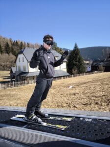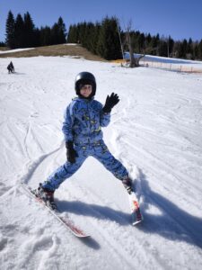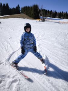 Po příjezdu na místo jsme první den věnovali seznámení s lyžařskou výbavou. 🎿 Děti si vyzkoušely nasazování lyží, manipulaci s lyžáky a naučily se, jak správně ukládat vybavení do lyžárny. Pro mnohé to byla úplně první zkušenost, a tak bylo důležité zvládnout základy ještě před samotným lyžováním.