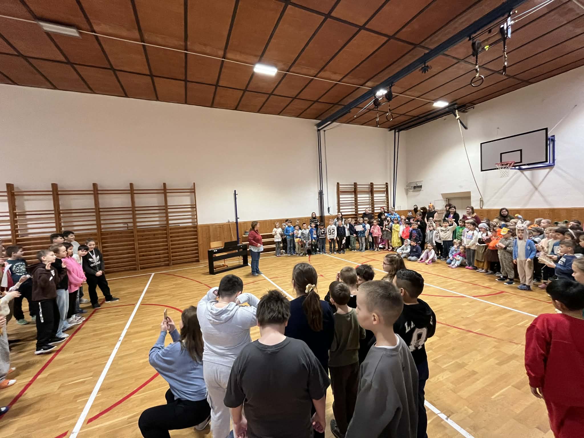 🎤👺 Ve středu 11. 2. se uskutečnilo masopustní zpívání prvního stupně. Byl zpěv, byly masky, byl tanec, byl medvěd a hlavně bylo veselo! 🕺🐻😁