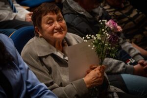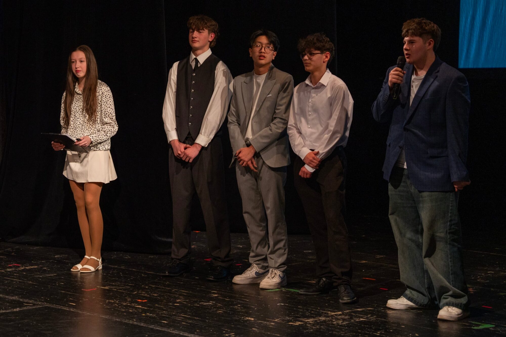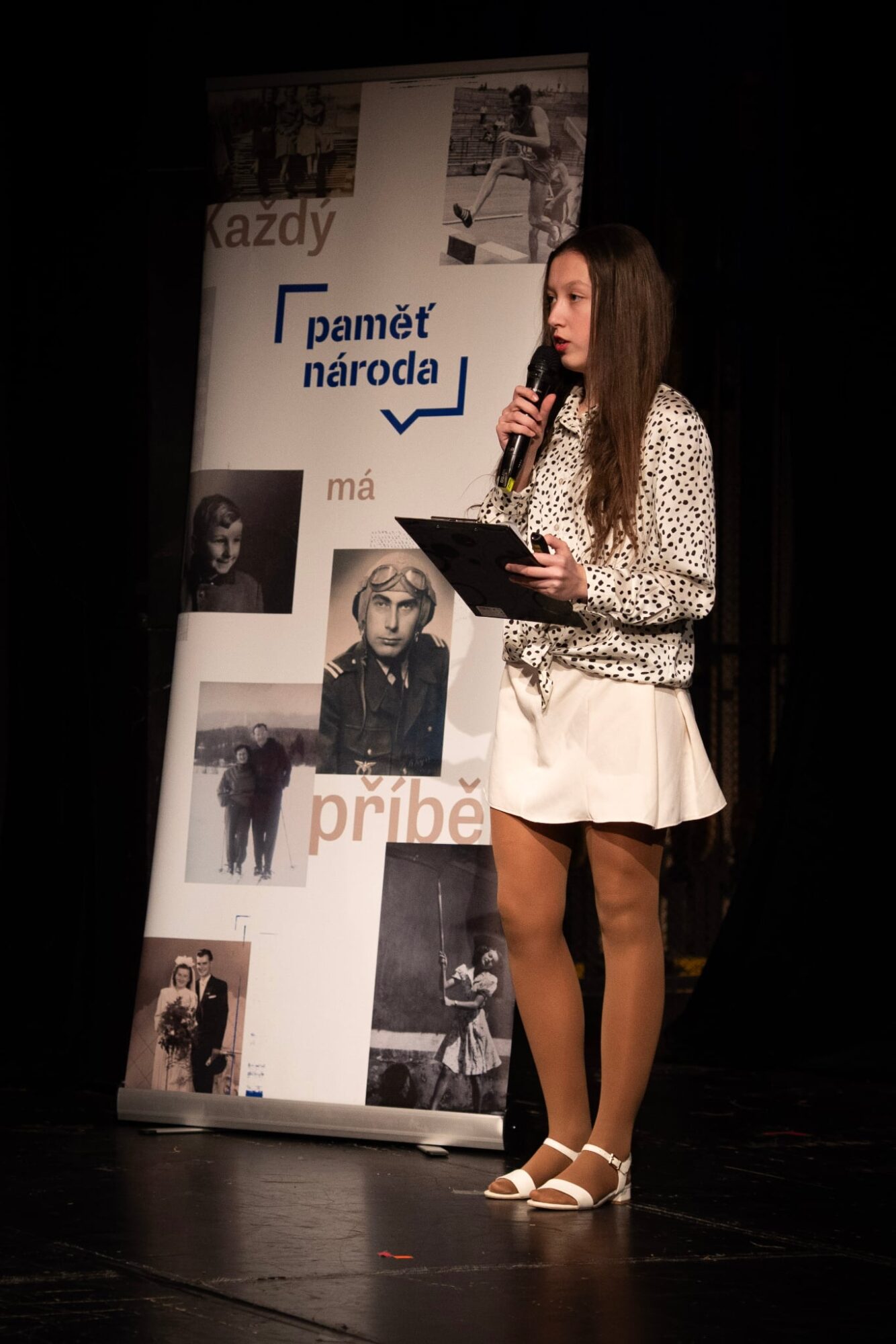 V pátek 13. března 2026 proběhla v Divadle Radost slavnostní závěrečná prezentace projektu Příběhy našich sousedů. 👵👴 Do projektu se z naší školy zapojilo 5 žáků 9. třídy, kteří zpracovali životní příběh pamětnice Boženy Špačkové. Žáci se se svým úkolem popasovali skvěle, dokonce je ocenila i porota jako jeden ze dvou nejzdařilejších výstupů večera. 👏