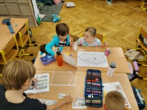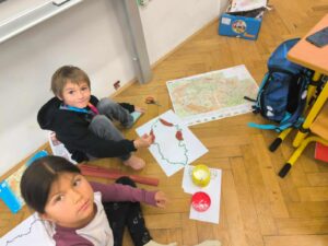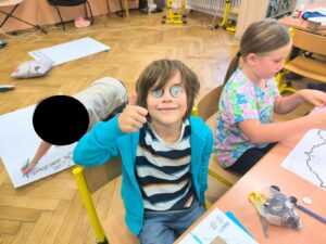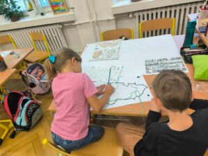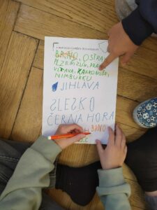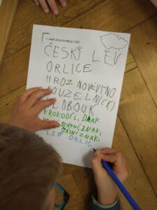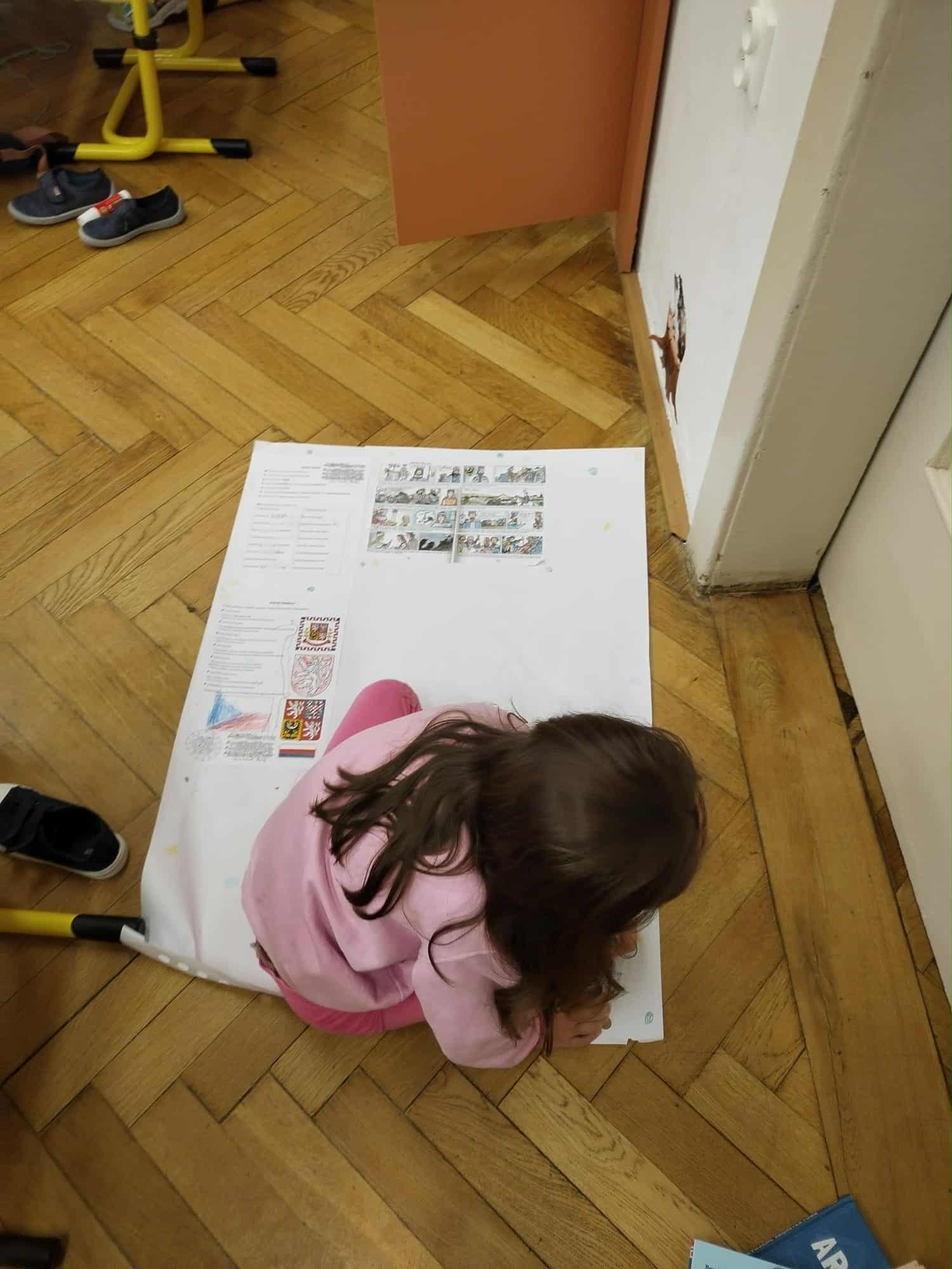 V „rohové“ aktivitě jsme pak zkoumali čtyři oblasti – symboly, osobnosti, historii a mapu Česka. Děti zkoušely poznat slavné Čechy ve hře Hádej, kdo jsem a zazpívaly si českou hymnu. 🎶