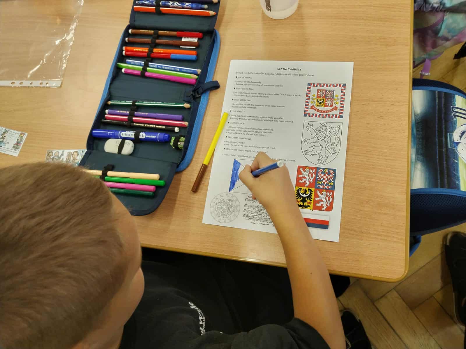 🎨 Poznávali jsme státní symboly a doplňovali text české hymny.