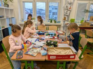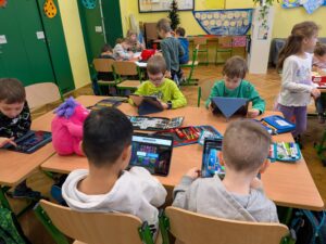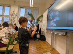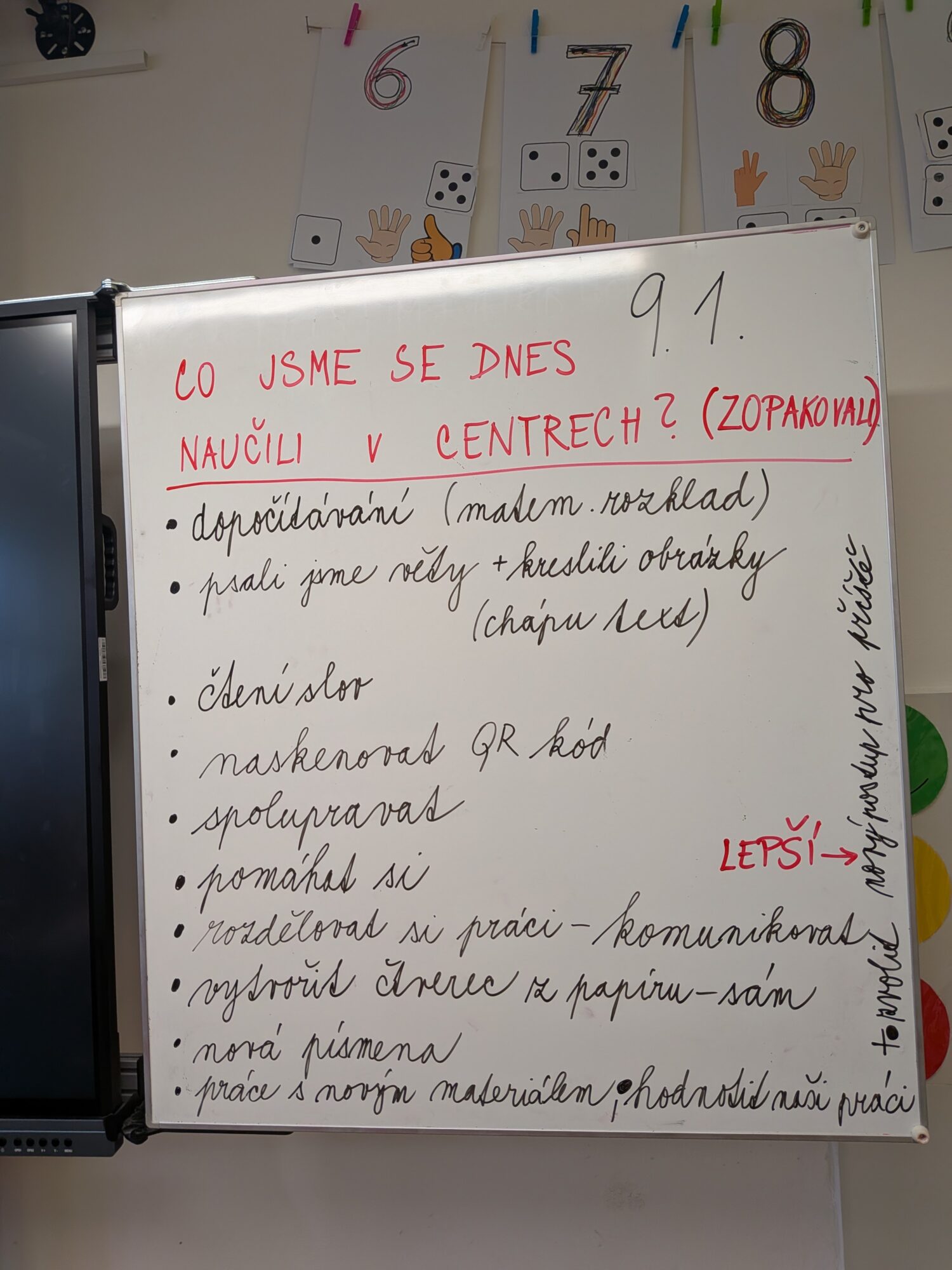 📱 V centru 1 jsme četli za pomocí iPadů – děti slova přiřazovaly k obrázkům, v dalším centru jsme počítali obyvatele v domečcích, ve třetím centru jsme vyráběli plakát zaměřený na vysvětlení pojmu STEAM. 🔎👨💻 Pracovalo se samostatně, ale i ve skupinách, kde si děti musely rozdělit úkoly – vybrat si písmeno, které budou zpracovávat, a techniku. Po dvou hodinách práce, kdy se žáci učili vlastním tempem, jsme hodnotili, co se nám povedlo a co jsme se naučili. 🧐