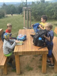 V pondělí 8. 9. jsme celé vyučování strávili venku v přírodě. 😎🌳 Naše „výuka pod širým nebem“ zahrnovala prvouku, český jazyk, tělesnou výchovu i čtení mapy.