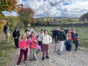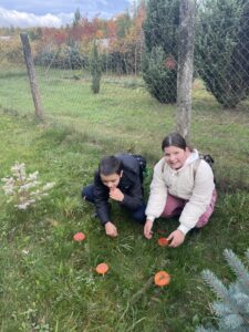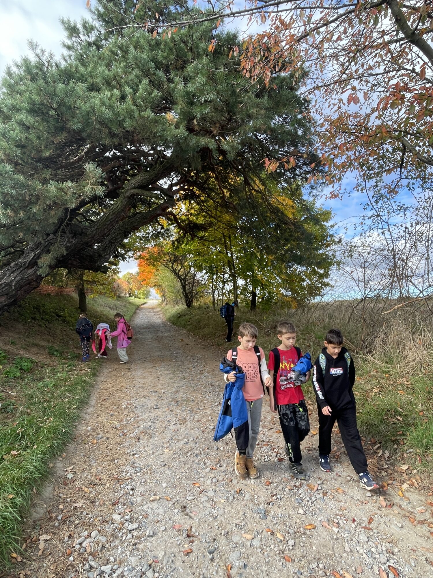 „Dnes jsme byli na výletě ve Vranově. Šli jsme do lesa. Žáci ve třídě se učili názvy stromů. A také jsme plnili úkoly od našeho učitele. Nasbírali jsme listí a šišky. Tato exkurze se mi moc líbila.“ 🙂