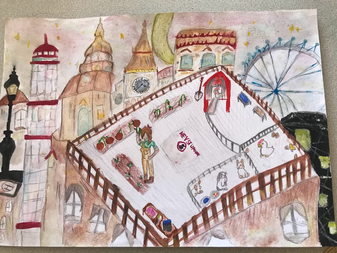 Úkolem bylo zachytit podobu ideálního farmáře či farmářky a představit, jak by mohla vypadat městská farma – co se na ní pěstuje, jaká zvířata tam žijí a jak lidé pečují o přírodu a půdu. 🥕🐥