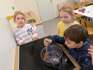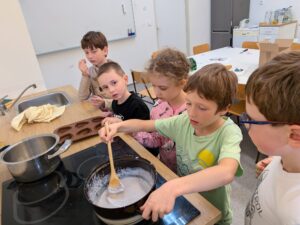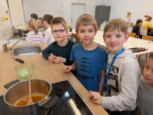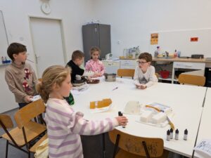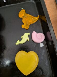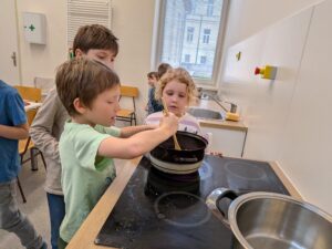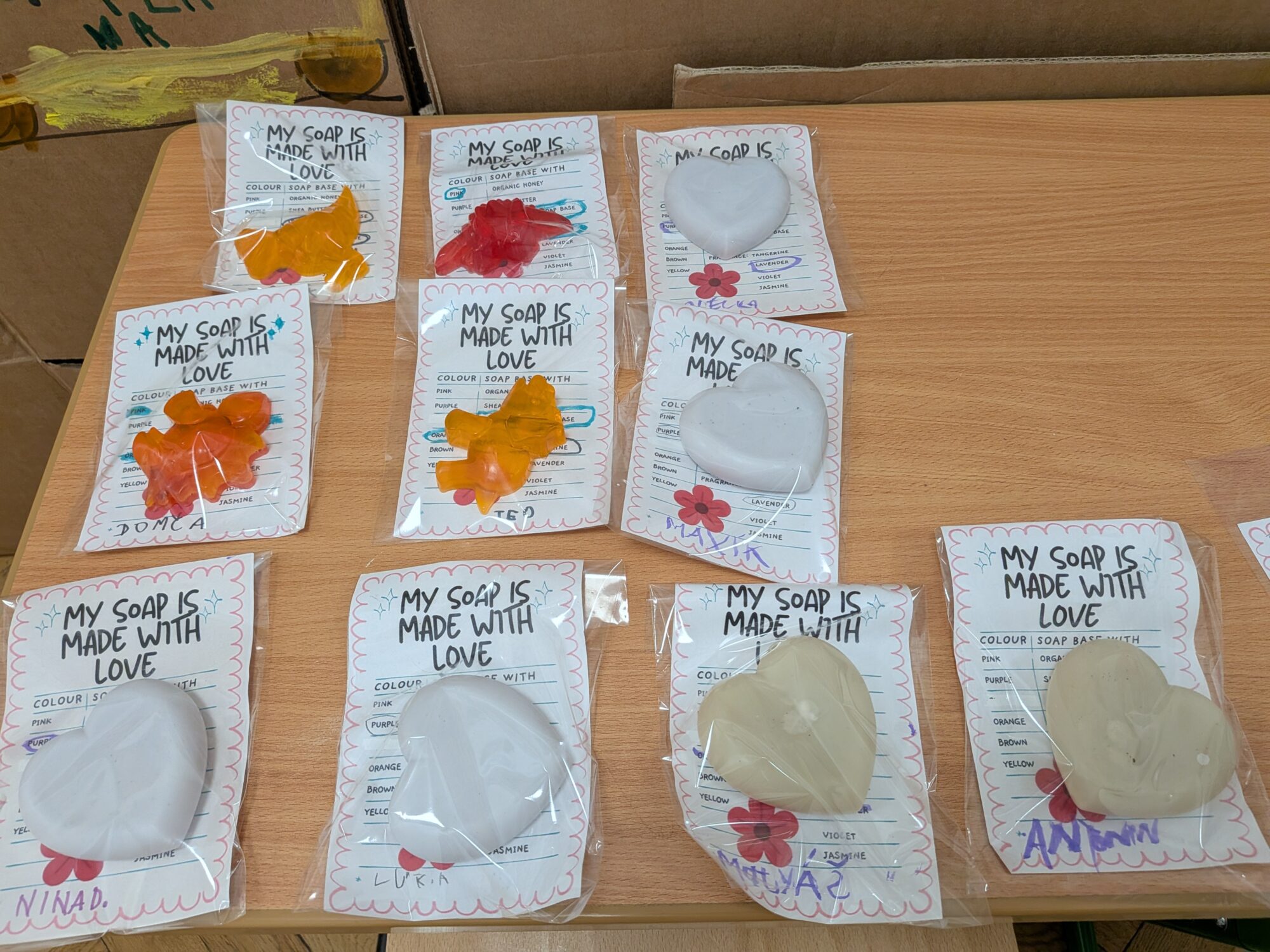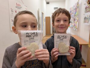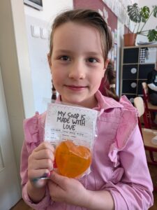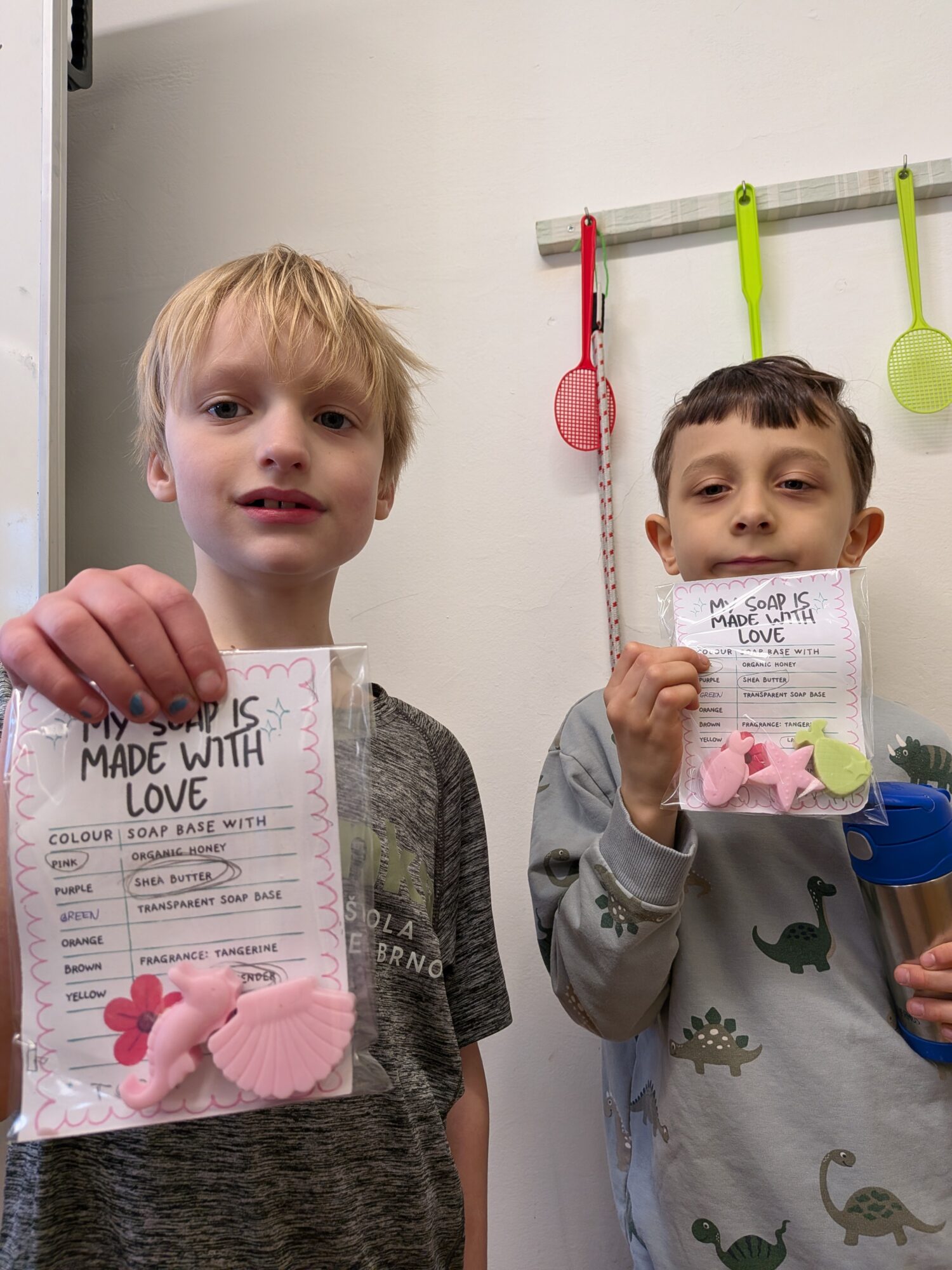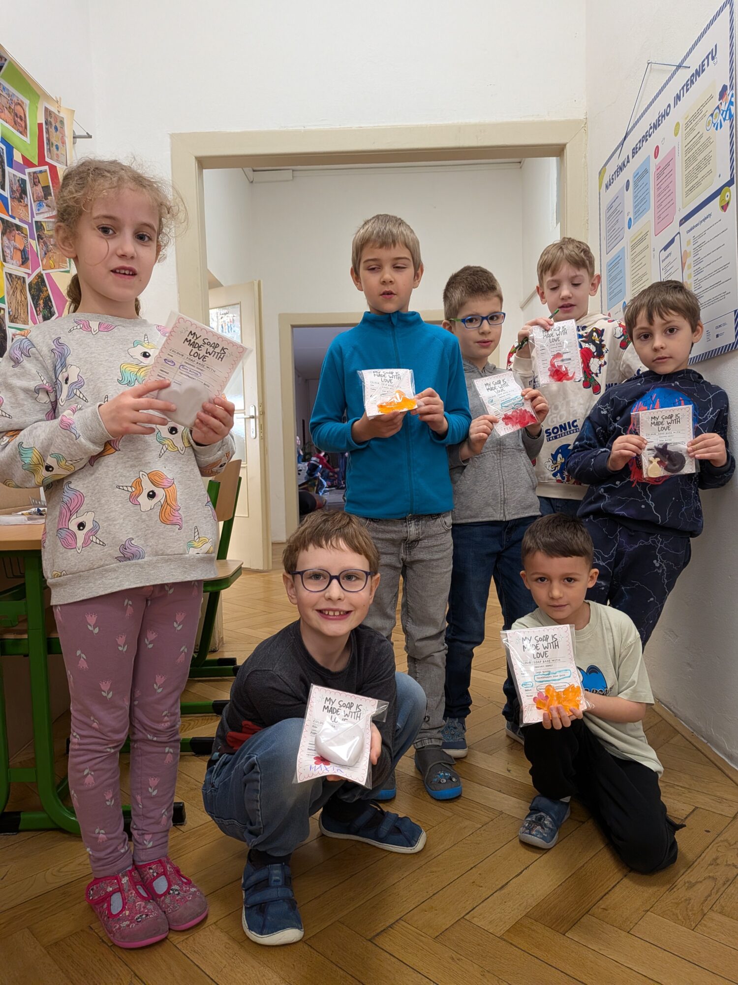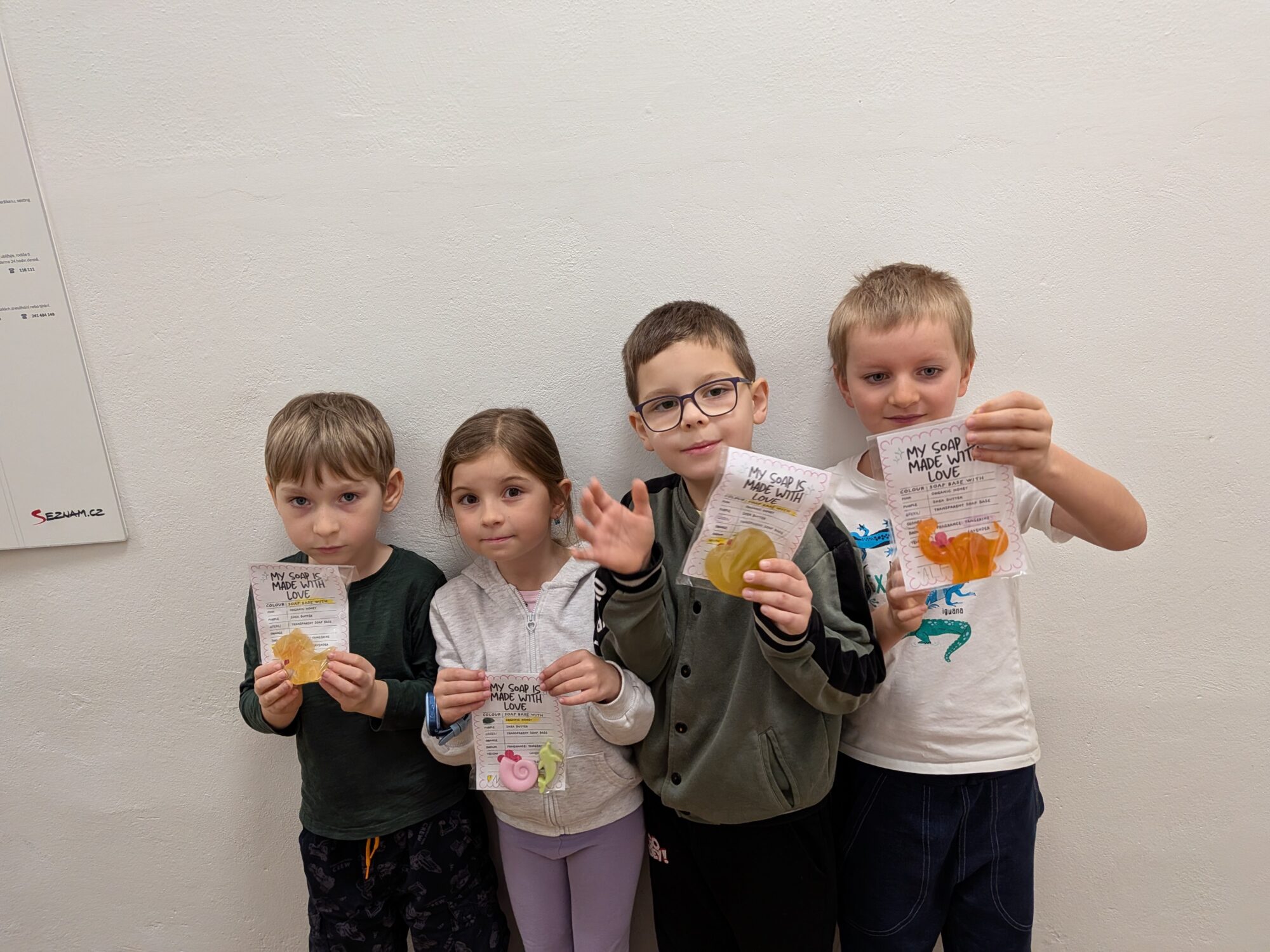 A jako bonus na závěr jsme si vyrobili i mýdla, která si děti s radostí odnesly další den domů. Mýdla jsme nejdříve „vařili“ a poznali jsme některá nová slovíčka z kuchyně. Do mýdlových hmot jsme si přidali vůni a barvivo. Každý si vybral vlastní formičku a další den si přišel vyzvednout hotový výrobek i se složením. To bylo vůně po škole, když jsme vařili mýdla! 🧼😊