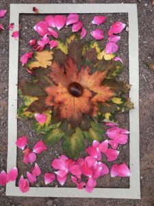 Děti si nasbíraly vlastní paletu přírodnin: listy, okvětní plátky, šípky i drobné větvičky. 🍂🍁🌹 Povídali jsme si o kompozici – co dát do středu, jak vyvážit tvary a jaké barvy spolu ladí. Pak už rámečky začaly ožívat. 🤩