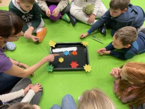 Žáci si povídali o tom, jak uvolnit vnitřní napětí a tlak ze starostí. Měli možnost své postřehy napsat do „kapek starostí“ a vymyslet „paprsky radostí“ neboli zdroje, které jim pomáhají překonat těžké chvíle. Někteří žáci si šli zabruslit a užit si pohodu pohybu venku. ⛸ Pohoda není náhoda a je potřeba o ni pečovat. 🤗