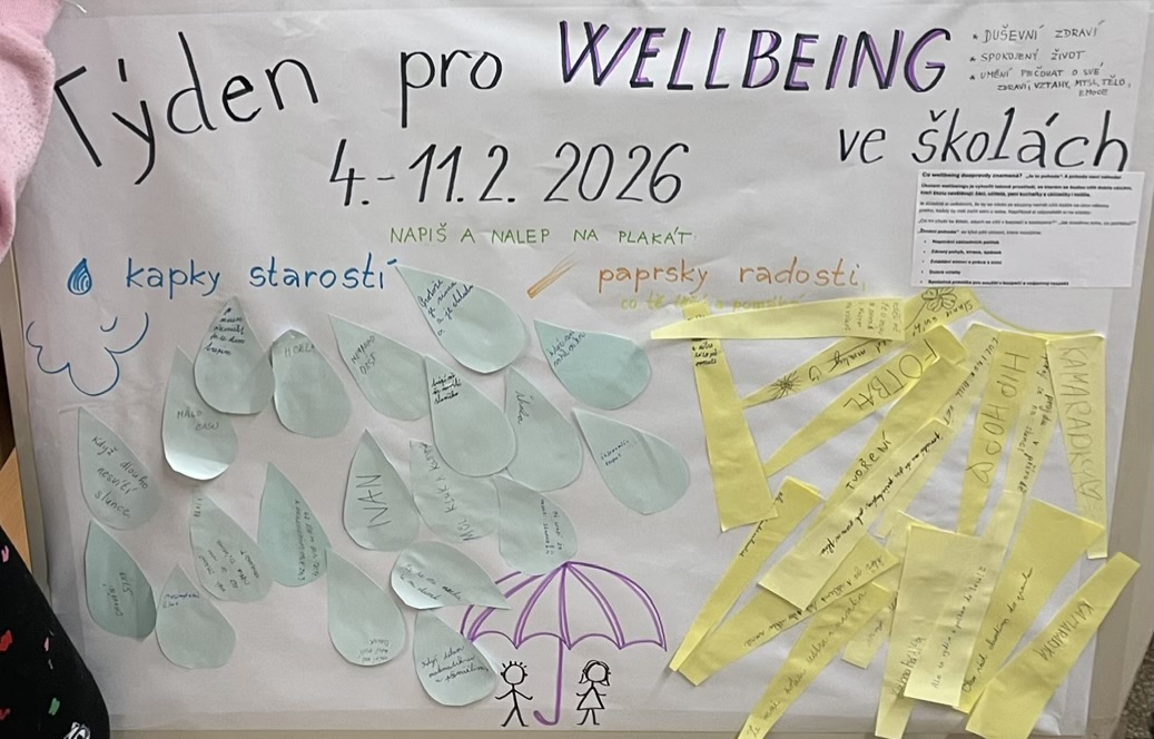 🧘♂️ V týdnu 4. – 11. 2. 2026 určeném pro rozvoj wellbeingu ve školách v ČR si vyhradila čas i naše škola. Wellbeing je zaměřený na rozvoj spokojeného života v oblasti vztahů, vlastního těla, odpočinku, emocí i naplnění základních potřeb každého člověka. 😌🧘♀️