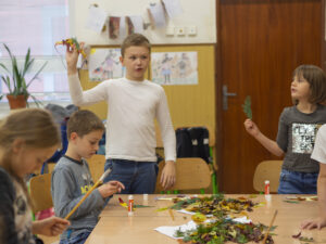 Dne 20. 11. 2019 se ve školní družině konala akce „Zamykání školní zahrady“. Žáci si vyrobili čelenky z listí, naučili se básničku a uklízeli zahradu před zimou. Klíčem zahradu uzamčeli.